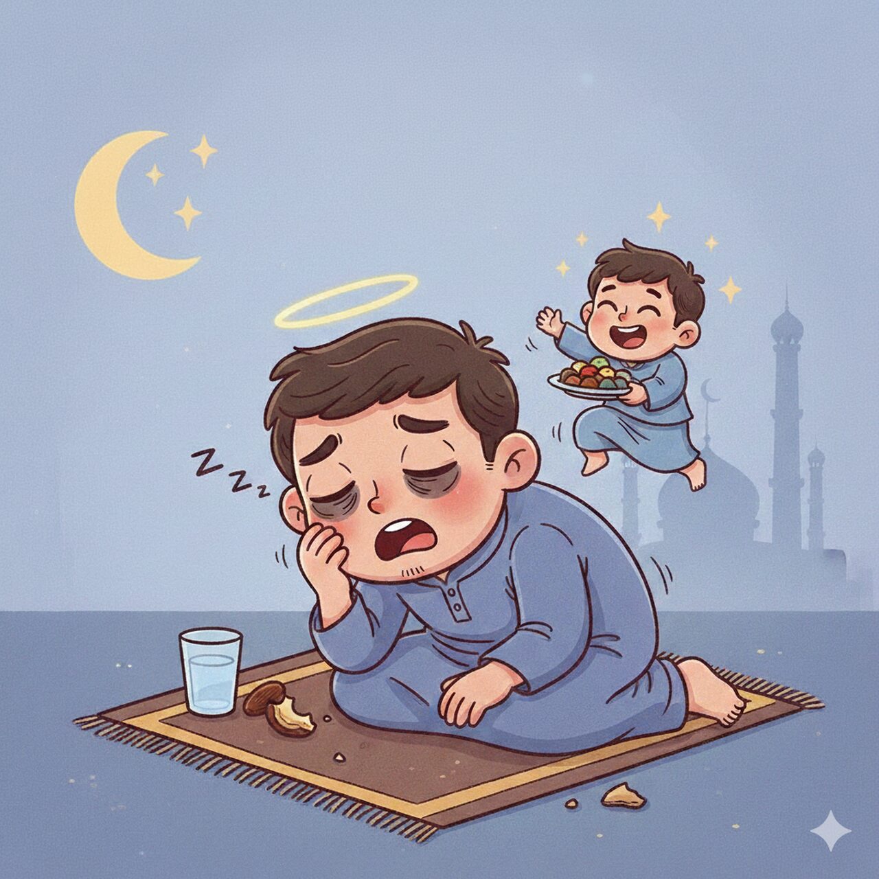 عند الأذان، أفطرا معاً. شعر الطفل أن العصبية خفّت، وأن الكلمة اللطيفة صنعت فرقاً، وفي تلك الليلة فهم الطفل أن بعض الغضب في شهر رمضان ليس قسوة، بل تعب يحتاج صبراً واحتواء. وأن الأخوّة تعني أن نكون قريبين، حتى عندما يكون الكلام قليلاً.
