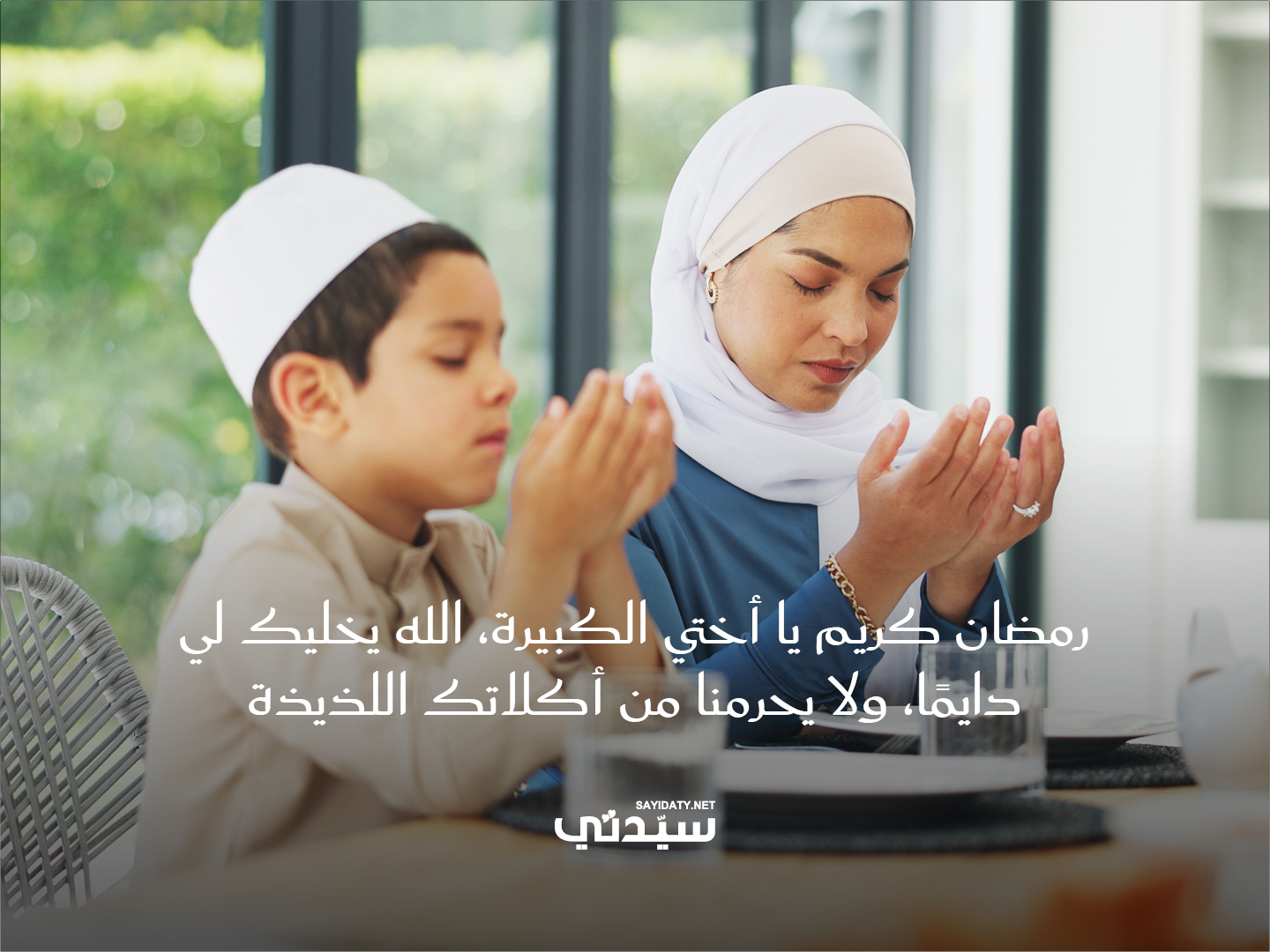 - رمضان كريم يا أختي الكبيرة، الله يخليك لي دايماً، ولا يحرمنا من أكلاتك اللذيذة.