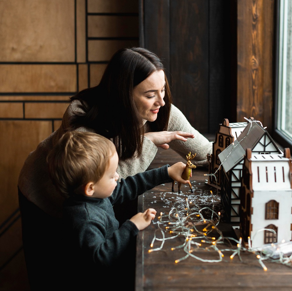 الأم والطفل يتشاركان اللعب