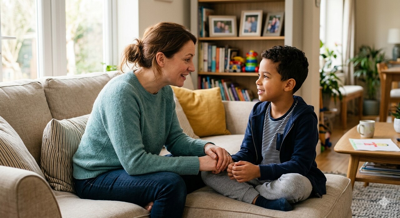 وأحب أيضاً اللحظات التي نجلس فيها مساءً عندما أكون متعباً قليلاً بعد اللعب أو بعد المدرسة. تقولين لي: "تعال، أخبرني ماذا حدث اليوم." ثم أبدأ أحكي لك كل شيء: من فاز في لعبة كرة القدم في المدرسة، ومن قال نكتة مضحكة في الصف، وحتى كيف سقط قلمي ثلاث مرات تحت الطاولة. ربما تبدو هذه الأشياء صغيرة، لكنك تستمعين لي وكأنها قصص مهمة جداً. وهذا يجعلني أشعر بأن يومي كله مهم لأنك تسمعينه.