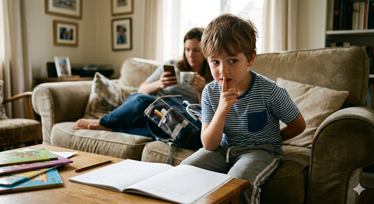 طفل يقول إنه أنهى واجبه بينما لم يفعل، في هذه الحالة تحققي بهدوء، ولا تصرخي، وناقشي معه السبب، ونظمي وقتاً واضحاً للدراسة.