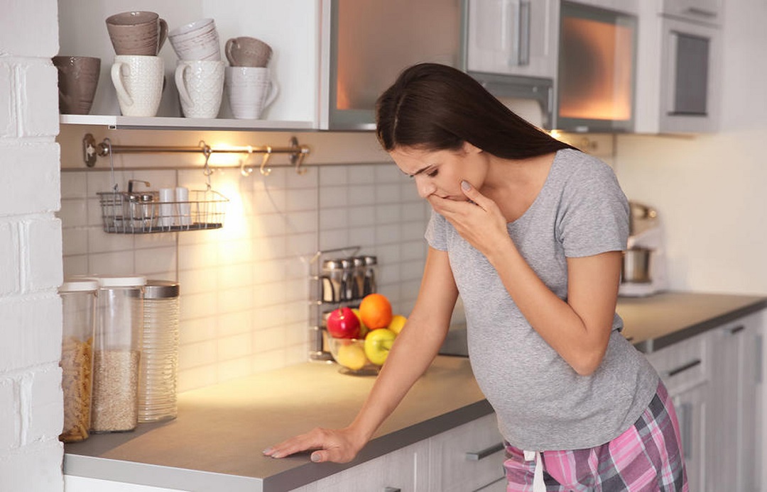 • (غثيان الصباح)، قد يحدث مع أو بدون قيء، وغالباً يبدأ حول الأسبوع الرابع.