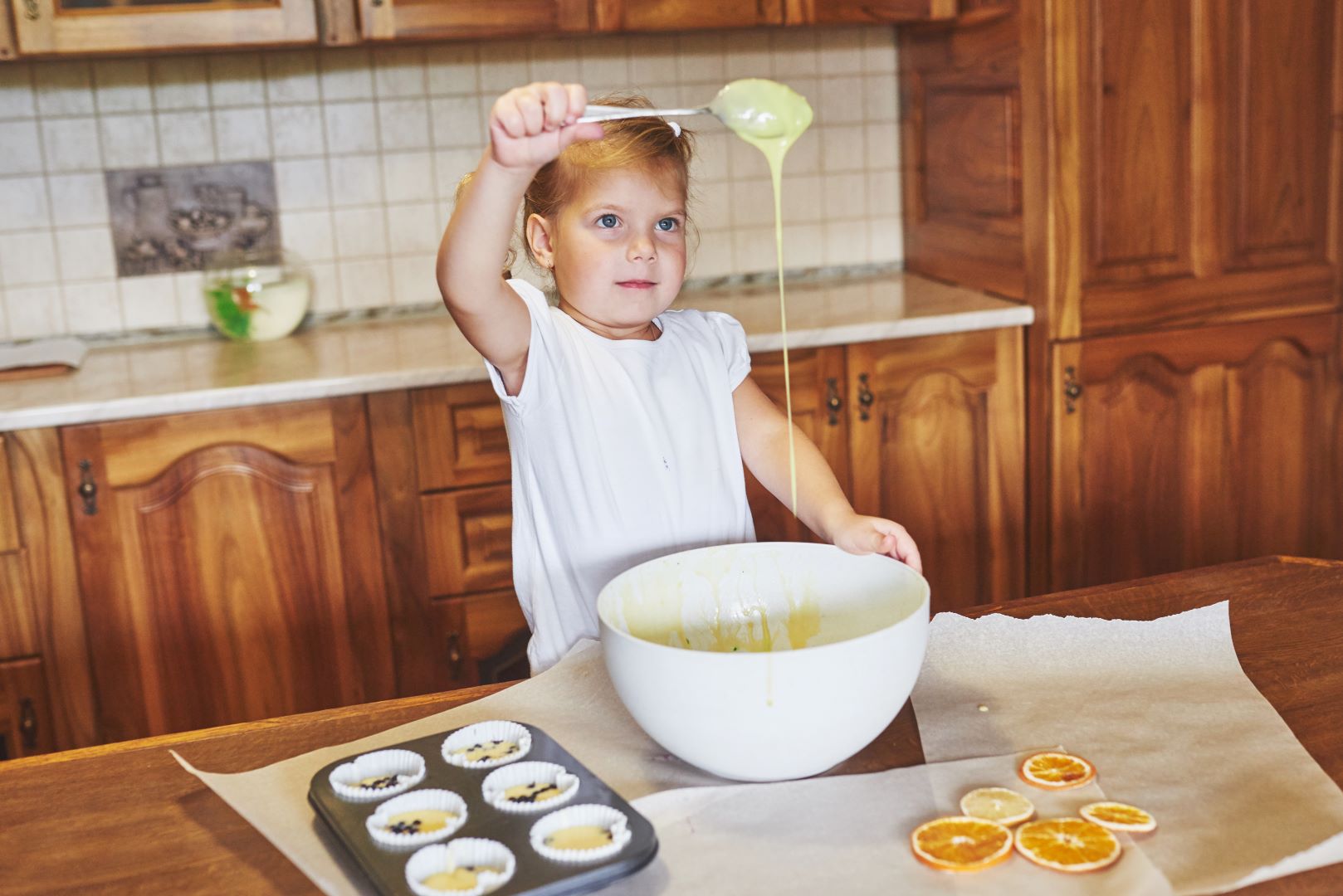 طفل يُعد طعاماً من البيض