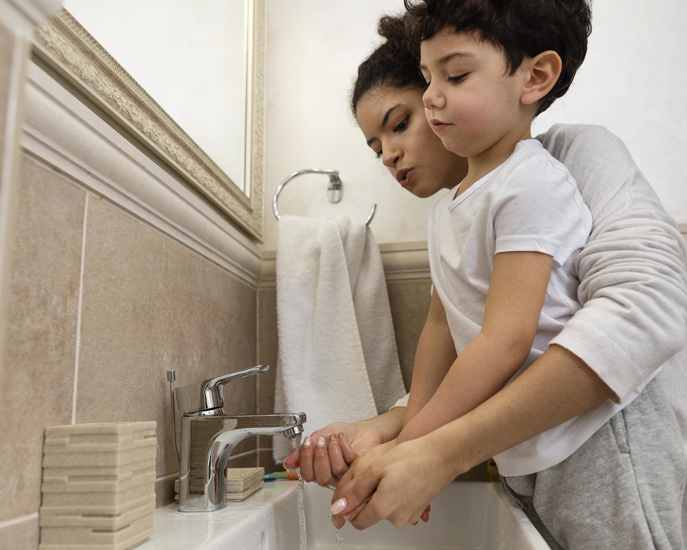- غسل اليدين بانتظام: الأطفال فضوليون ويلمسون أشياء غير مألوفة؛ ما يعرضهم للبكتيريا والجراثيم. شجعي طفلك على غسل يديه بالصابون والماء الجاري بعد كل نشاط أو عند لمس شيء غير نطيف.
