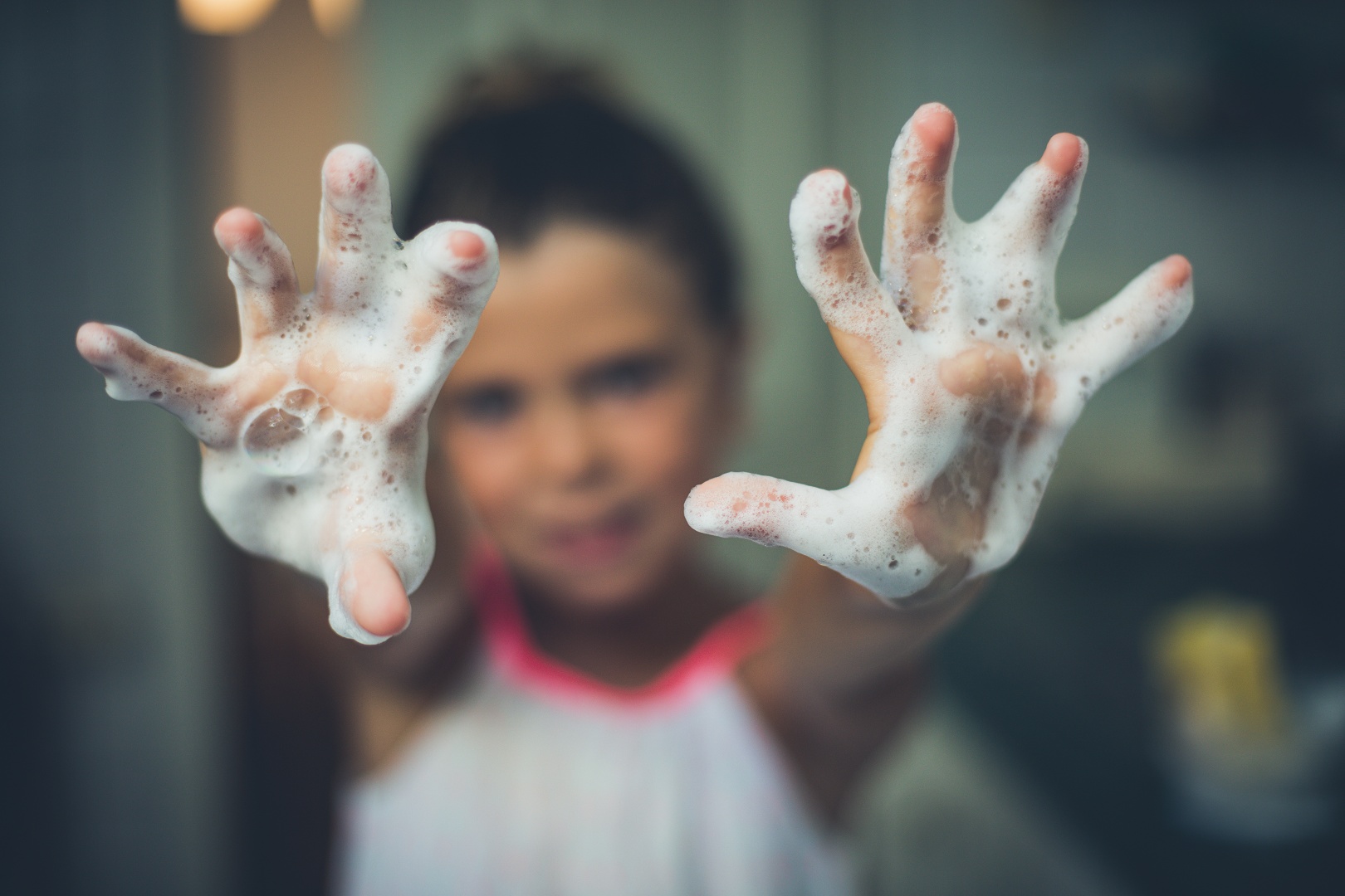 - تأكدي من غسل اليدين جيداً بالماء والصابون، خاصة بعد استخدام الحمام، وقبل لمس الطعام أو تناوله. علّمي أطفالك الطريقة الصحيحة للغسل لمدة لا تقل عن 20 ثانية.