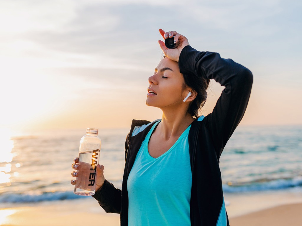 • اشربي الماء باستمرار طوال اليوم: بدلاً عن الانتظار حتى الشعور بالعطش (الذي غالباً ما يظهر بعد بدء الجفاف) احرصي على شرب الماء على فترات منتظمة عبْر اليوم، وخاصةً قبل وبعد التعرُّق أو النشاط المكثف.