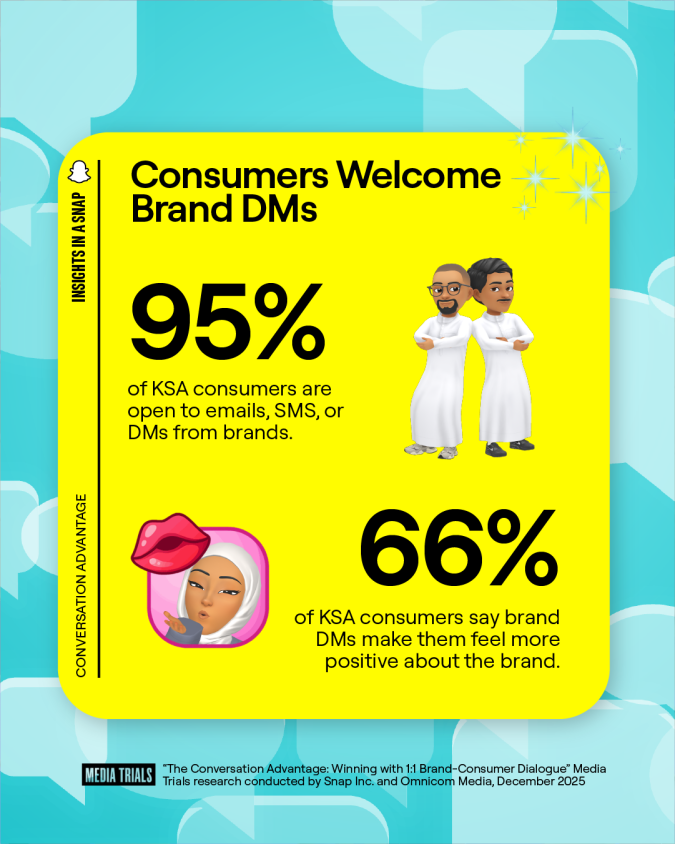وتظهر النتائج وجود تحول واضح في سلوك المستهلكين، إذ لم يعد التواصل يقتصر على الوسائل النصية، بل بات يشمل أيضاً الصور ومقاطع الفيديو والتواصل التعبيري المدعوم بالذكاء الاصطناعي. وفي المملكة العربية السعودية، أصبحت منصات مثل سناب شات أداة محورية لتحديد كيفية تواصل الناس والتعبير عن أنفسهم والتفاعل مع العلامات التجارية بطرق أكثر عمقاً وذات طابع شخصي.