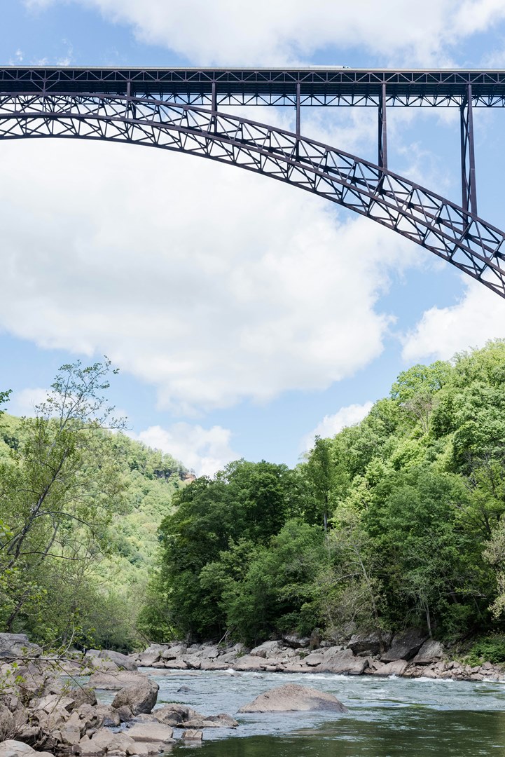 يُعَدُّ هذا الجسر الفولاذي المقوس ذو الامتداد الواحد ثالث أعلى جسر في الولايات المتحدة، حيث يبلغ ارتفاعه 876 قدماً فوق نهر نيو. إنه مرتفع للغاية إلى درجة أن هواة القفز بالمظلات يستخدمونه باعتباره منصة انطلاق خلال مهرجان يوم الجسر السنوي، حيث يُسمح مؤقتاً بالقفز بالمظلات. يمر الجسر عبر بعضٍ من أجمل المناظر الجبلية في ولاية فرجينيا الغربية، حيث تغطي الغابات الكثيفة جدران الوادي شديدة الانحدار أسفله. تصميمه الهندسي مذهل، لكن موقعه المميز يجعله مميزاً للغاية. توجد العديد من نقاط المراقبة القريبة حيث يمكنك ركن سيارتك والتقاط صور للجسر بامتداده الكامل مع خلفية من جبال الأبلاش.
