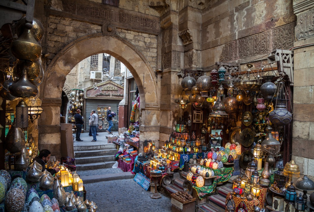 يُعدُّ خان الخليلي، الواقعُ في قلبِ القاهرة، من أقدمِ أسواقِ مصر، إذ يرجعُ تاريخُ المكان، الذي يبيعُ تشكيلةً واسعةً من المنتجات، إلى القرنِ الـ 14. تُباع هناك هدايا تذكاريَّةٌ تقليديَّةٌ رخيصةُ الثمن، ومنتجاتٌ فريدةٌ من صنعِ حِرفيين محليين، لا سيما المجوهراتُ، والتوابلُ العطريَّة مثل الفلفلِ الأسود، والزنجبيلِ، وأعوادِ القرفة، ومصابيحِ علاء الدين القديمة «يعودُ معظمها إلى القرنِ الـ 19»، إضافةً إلى منتجاتِ النسَّاجين المصريين، والتماثيلِ المعدنيَّة، والأواني المطليَّة، فضلاً عن السجَّادِ، والمنتجاتِ الجلديَّة، وغيرها الكثير.