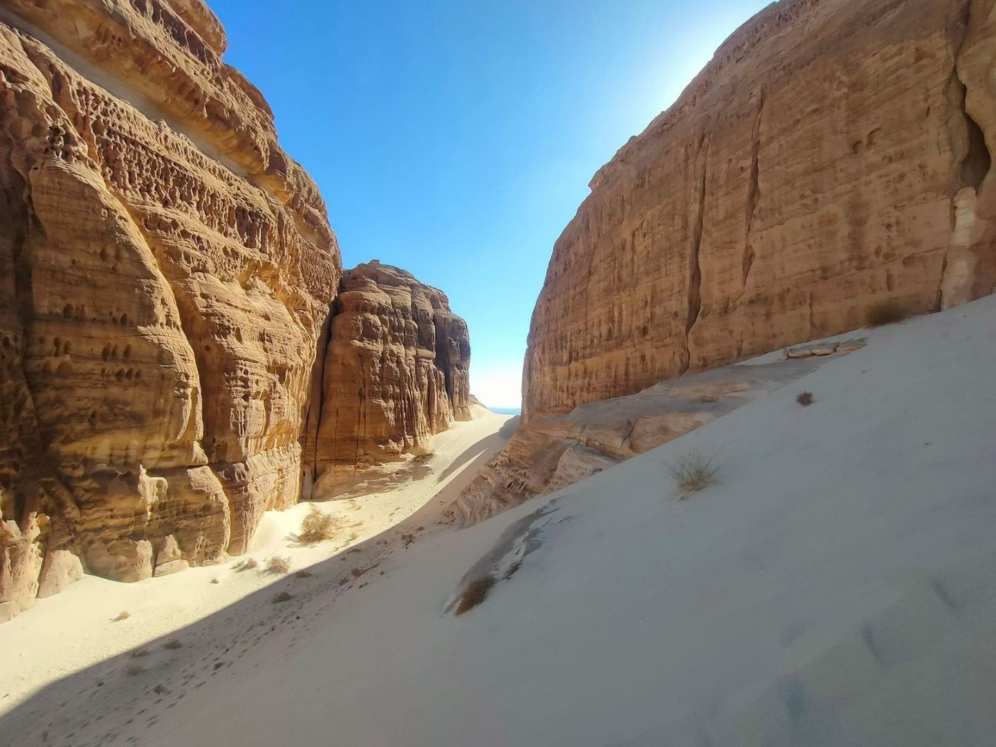 تبرز الصحراء الزرقاء كلوحة فنية وسط صحراء جنوب سيناء، صخورها وكأنها من عالم آخر. تقع على بعد بضعة كيلومترات من دير سانت كاترين، وتمتد على مساحة 14 كيلومتراً مربعاً؛ لتمنحكِ شعوراً بالسير على كوكب موازٍ. الصخور الملونة والمتاهات الصخرية تجعل المكان مثالياً لعاشقات التصوير والاستكشاف، ويمنحكِ إحساساً بالدهشة والحرية.