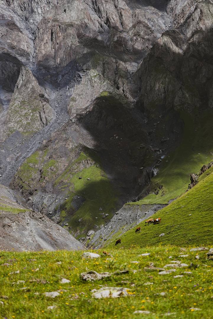 تقع بحيرات أبوديلوري في منطقة كازبيجي الخلابة، وهي عبارة عن ثلاث بحيرات جليدية تشتهر بألوانها المميزة: الأخضر والأزرق والأبيض. يمكن الوصول إلى هذه البحيرات من يونيو إلى سبتمبر، ويُعَد شهر يوليو الوقت الأمثل للزيارة بفضل ازدهار الأزهار البرية. تقع البحيرات الخضراء والزرقاء بالقرب من بعضها بعضاً، بينما تقع البحيرة البيضاء على بُعد مسافة قصيرة، عند قاعدة نهر تشوخي الجليدي على ارتفاع يزيد على 2800 متر. وتُعَد البحيرة البيضاء، الأبرز؛ أكثرها جمالاً، ويتطلب الوصول إليها جهداً أكبر، لكنها تستحق الزيارة بكل تأكيد. هناك طريقان رئيسيان للوصول إلى بحيرات أبوديلوري. يبدأ الطريق الأسهل، الذي يبلغ طوله حوالي 6-7 كيلومترات، من قرية روشكا. أما إذا كنت ترغب بزيارة البحيرات من ستبانتسميندا؛ فعليك الوصول إلى جوتا التي تبعد ساعة واحدة بالسيارة عن البلدة. للمتنزهين ذوي الخبرة، تبدأ رحلة مدتها 8 ساعات من جوتا وتعبر جبال تشوخي. للوصول إلى البحيرة البيضاء من البحيرات الخضراء والزرقاء، يلزم القيام برحلة مشي إضافية بطول 1.5 كيلومتر فوق الصخور والصخور الكبيرة. شُكِّلت هذه التضاريس الصعبة بفعل الجليد على مدى آلاف السنين؛ ما يوفر مناظر طبيعية فريدة ووعرة للمسافرين المغامرين.