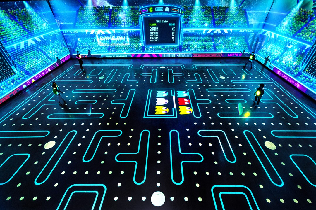 استعدوا للانطلاق في مغامرة تجمع بين الحركية والتشويق، وتُحلق بكم في عالم من الإثارة والتسلية الحديثة، من خلال تجربة باك-مان الجديدة كلياً في مركز آكتيف غايمز؛ حيث أعيد إحياء أسطورة اللعبة الكلاسيكية بأسلوب حديث ومثير. استعدوا لخوض مغامرة لا تُنسى في متاهة عملاقة مضيئة، تتراوَح بين الظلال والأضواء، وتراوغ فيها الأشباح الرقمية، وتطارد أعلى النقاط، كل ذلك بأسلوب واقعي مستوحى من أجواء النيون الكلاسيكية. وبفضل تقنيات إسقاط متطورة، تتحول الأرضية إلى متاهة ديناميكية تتغير باستمرار، بينما يتابع "سترة باك" حركتكم ونقاطكم؛ لتجسد تجربة ممتعة ونشطة تماماً، مثالية للمرح والتحدي بين الأصدقاء والعائلة.
