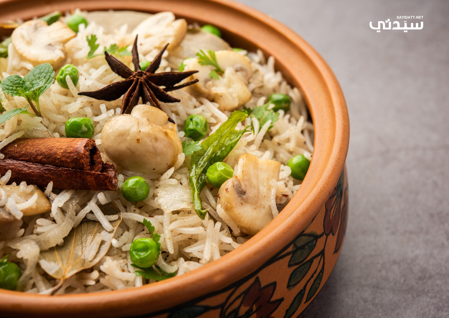 - يُقدَّم ساخناً مع لبن زبادي، أو رايتا بالخيار، ويُزيَّن بالنعناع واليانسون النجمي.