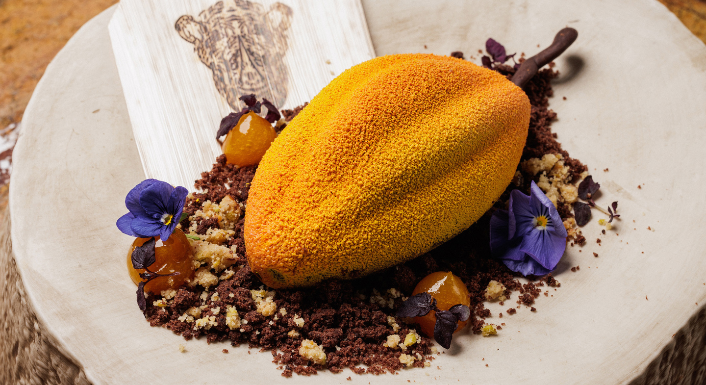 هذه الحلوى المذهلةُ التي تشبه ثمرةَ الكاكاو، تُعدُّ تحفةً فنيَّةً في فنِّ الحلويات، وتجمعُ بين قوامِ الشوكولاتة الغني، ومذاقِ الفواكه الاستوائيَّةِ، والتركيبةِ المقرمشة.