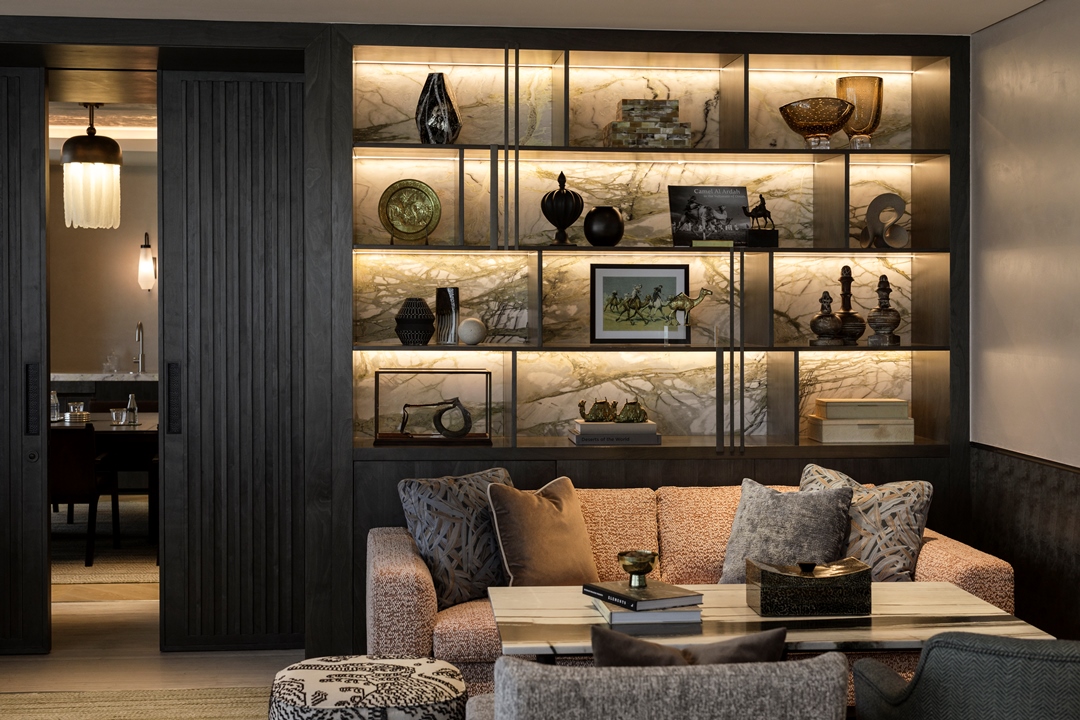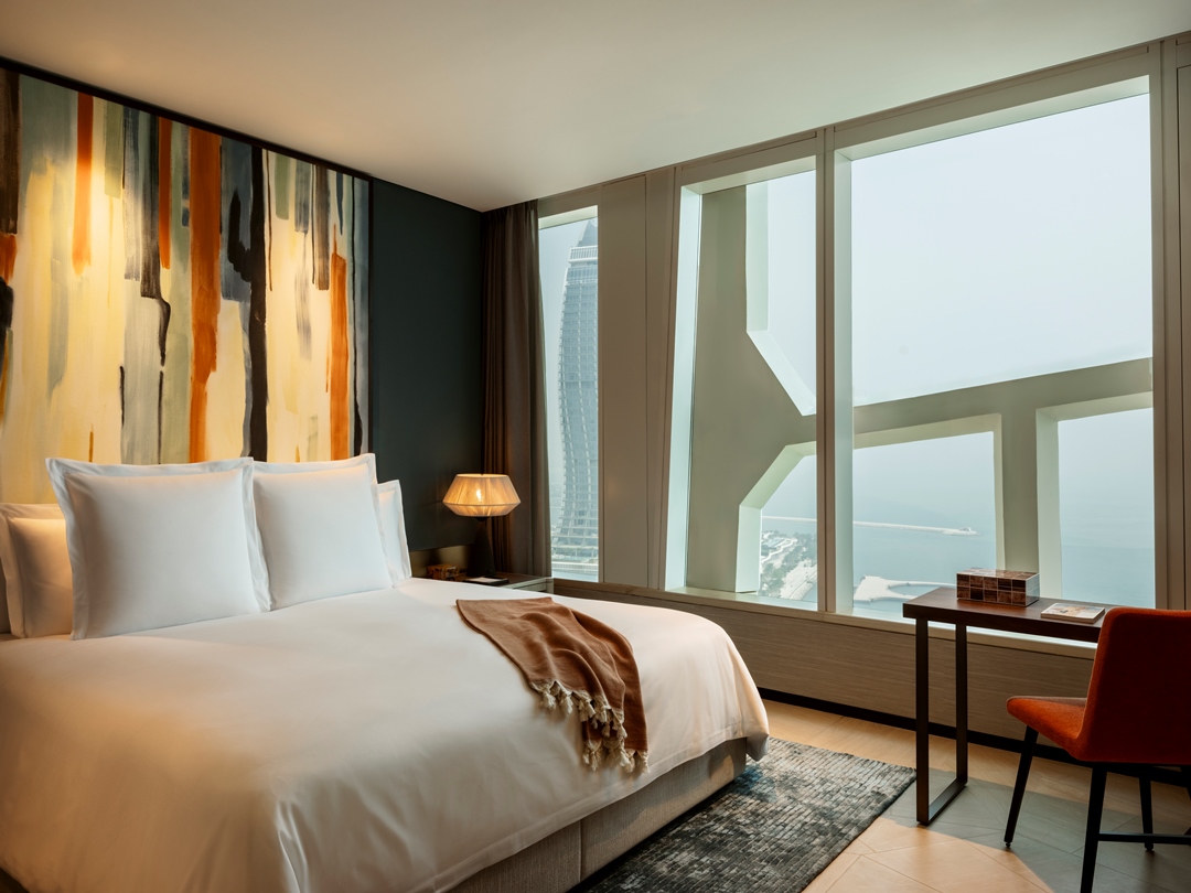 عبر 155 غرفة وجناحاً، و162 شقة فندقية، و276 مسكناً، يتجاوز الفندق مفهوم الراحة ليقدّم تجربة تنبض بالخصوصية. كل مساحة هي إيقاع خاص داخل نسق المدينة، صُممت بوعي عميق لتأثير البيئة على المشاعر. تنساب الإضاءة على الجدران بتدرجات دافئة وباردة، وتتجلّى خامات تذكرنا بالساحل والصحراء. أما الأعمال الفنية القطرية المحلية المنتشرة في الأجنحة والمساكن والمساحات العامة؛ فليست مجرد زينة، بل رسائل نابضة بالحياة.