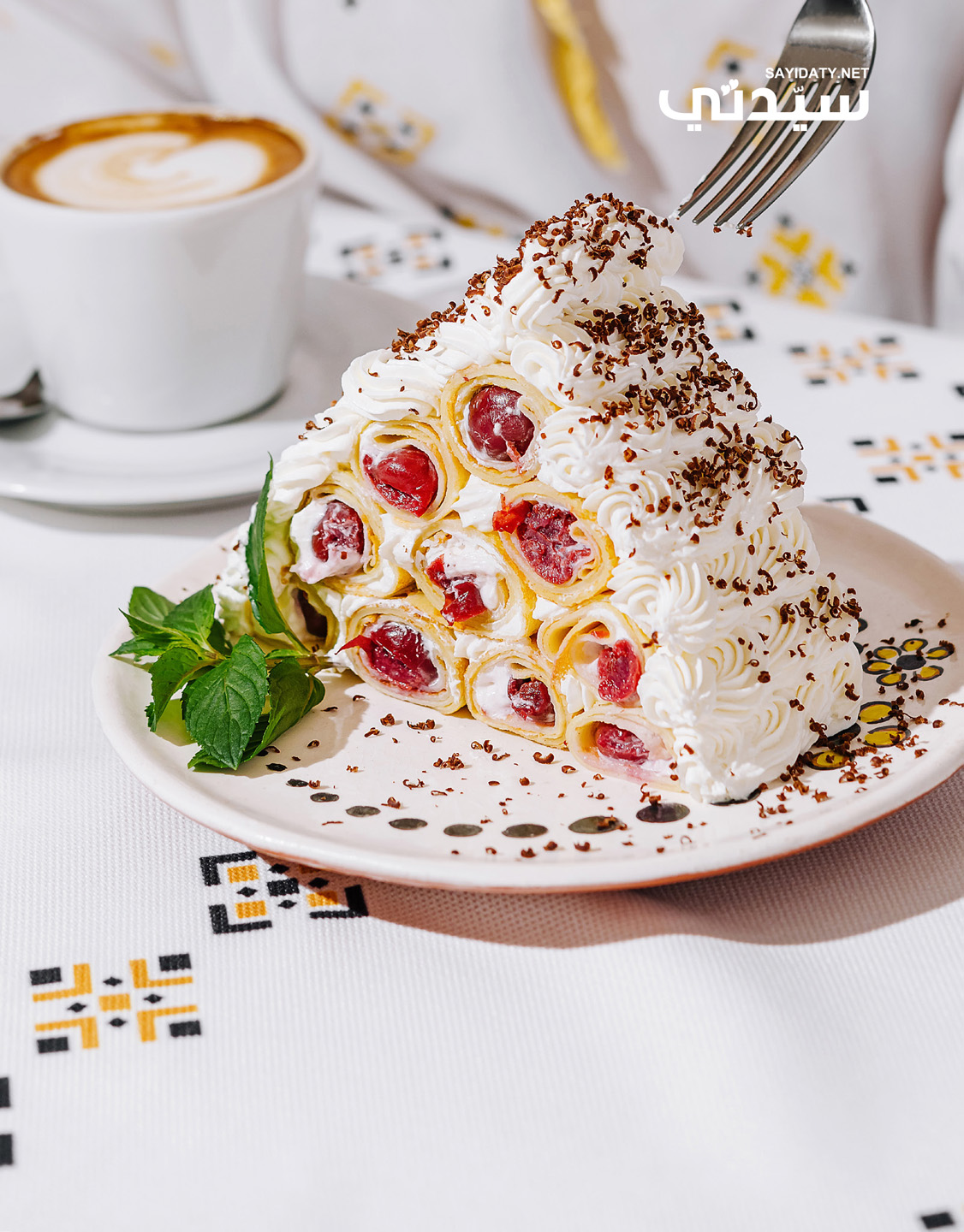 يُصنَع هذا الطبقُ من رولاتِ كريب محشيَّةٍ بالكرز، تُرتَّب على شكلِ هرمٍ، وتُغلَّفُ بالكريمةِ المخفوقة، وأحياناً يُسمَّى "كيكة أصابع الكرز".