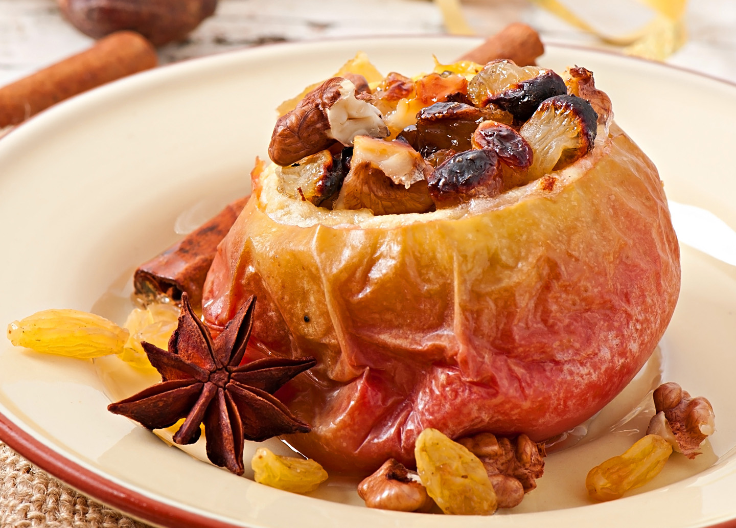 تفاح مخبوز محشو بالمكسرات والتوابل