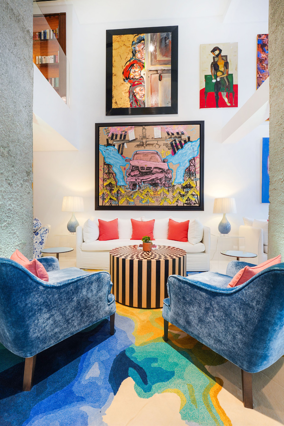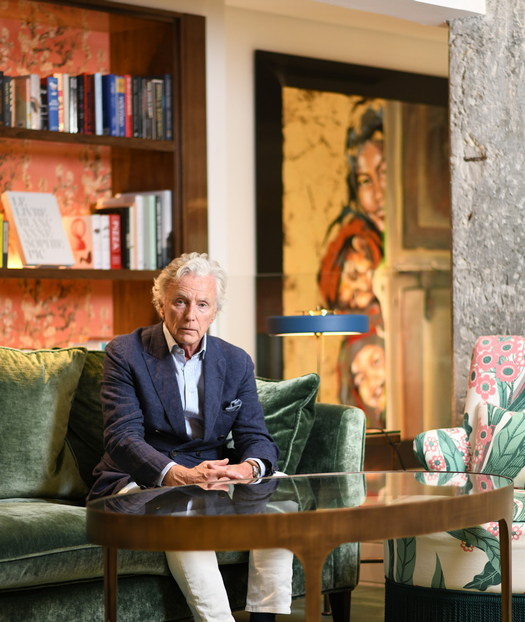 خلال وجودنا في «ذا ميرشانت هاوس» في البحرين، التقينا غوردون كامبل غراي، مؤسِّسَ الفندق، الذي تحدَّث عن زمنٍ، تتشابه فيه الفنادقُ، وتذوبُ فيه الملامحُ خلفَ واجهاتٍ من الرخامِ والزجاج، لكنْ «ذا ميرشانت هاوس» يبدو مختلفاً، فهو مثل قصيدةٍ من ضوءٍ وألوانٍ، ويُعيد تعريفَ العلاقةِ بين الفنِّ والضيافة. يقولُ غراي: «في كلِّ زاويةٍ لوحةٌ، ولكلِّ قطعةِ أثاثٍ حكايةٌ، وفي كلِّ تفصيلٍ دعوةٌ للتأمُّل والجمال. أحببتُ الفنَّ منذ زمنٍ طويلٍ، لكنَّني لاحظتُ أن أغلبَ الفنادق، تتعاملُ معه بوصفه خلفيَّةً صامتةً بلا روحٍ! أردتُ أن أخلقَ مكاناً، يتنفَّسُ الفنَّ، وتُصبح فيه اللوحاتُ جزءاً من التجربةِ اليوميَّة، لا مجرَّد ديكورٍ معلَّقٍ على الجدران».