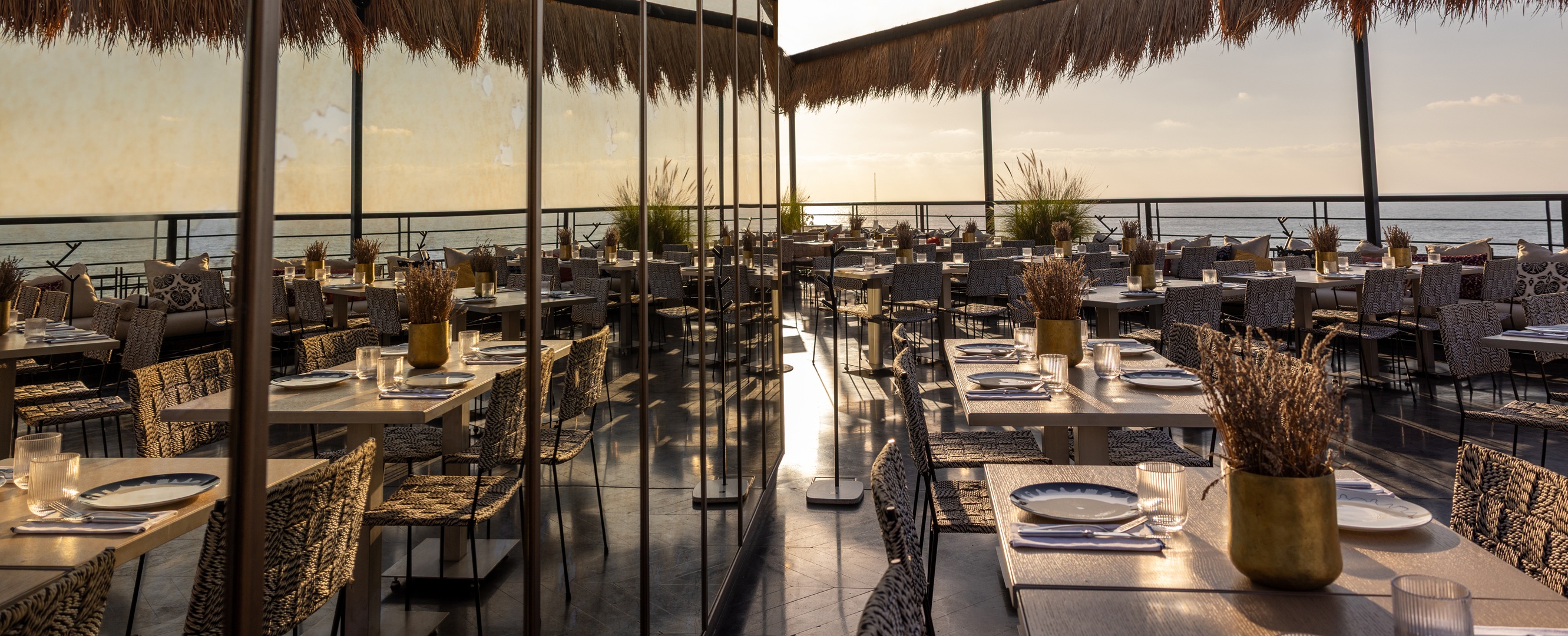 "أم شريف"، الواقع في فندق ورويك بالم بيتش بيروت، مطعم لبناني يتميز بإطلالة بحرية خلابة؛ ولتجسيد سحر الشرق الذي يشتهر به المطعم، استخدمت مواد طبيعية كالقش، إلى جانب عناصر زخرفية كالفوانيس والسجاد ذي النقوش الشرقية المعقدة. تتكامل هذه التفاصيل، جنباً إلى جنب مع الألوان والأقمشة المختارة بعناية؛ لخلق جو أصيل وجذاب، يعكس هوية المطعم الفريدة.