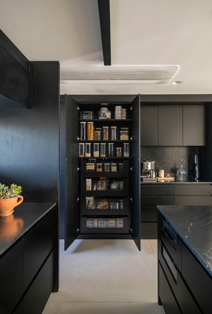 على غرار الأبيض الناصع، اللون الأسود اللامع ليس مفضّلاً للخبراء في إطار طلاء خزائن المطبخ. ينسحب الأمر على أيّ لون طلاء داكن جداً، وذلك لأنه سيُظهر بصمات الأصابع والبقع والغبار بسهولة. فمن الصعب الحفاظ على نظافة الخزائن سوداء اللون الصارخة فحسب؛ بل إن استخدام هذا اللون القاسي في مساحة واسعة كهذه قد يُعطي انطباعاً خاطئاً. فالخزائن سودا اللون جريئة بالتأكيد، لكنها قد تُصعّب إضافة لمسة دافئة إلى المطبخ. كما أن الأسود ليس لوناً موجوداً في العناصر الطبيعية الأخرى التي ستُدمج في إطار تصميم المطبخ. لذلك، إذا كانت القارئة معجبة بالأسود؛ فمن الممكن استخدامه في المساحات الأصغر حجماً، أو على عناصر محددة، مع تجنُّب الدرجات شديدة اللمعان من الأسود؛ بل حصر التفكير في التشطيبات المطفأة أو الساتان.