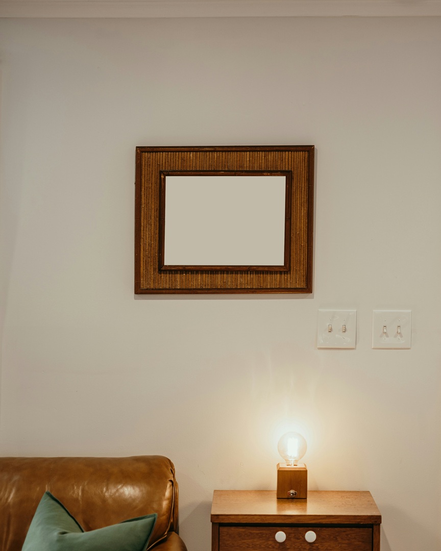مرآة مؤطرة تغطي لوحة الكهرباء