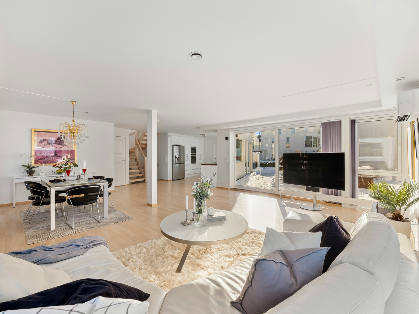 منزل يتبع النمط المفتوح في الديكور مع سجادات صغيرة على الأرضية