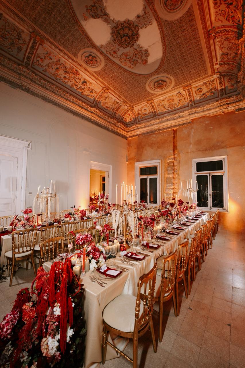 يُعَدُّ القرمزي والأسود لونين رومانسيين لحفلات الشتاء ذات الطابع العصري، خاصةً تلك التي تُقام في يوم الحب. يتوافر العديد من الزهور الطبيعية باللون الأحمر، ويمكنكِ تضمين درجات داكنة من خلال كؤوس الماء، والشموع المدببة، وبطاقات قائمة الطعام. زيني طاولاتكِ بمفارش قرمزية اللون ومناديل ساتان لإطلالة غنية ومميزة.