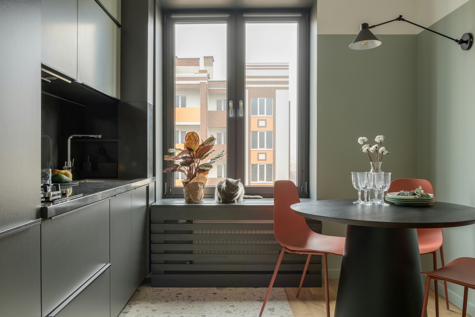 المقصود بألوان عصر الريترو المستعادة في العام المقبل (2026)، في إطار ديكورات المطابخ، وتحديداً في صبغ الخزائن، الرمادي الدافئ وأحمر البرغندي الغامق، والأزرق الغني الخاص بالحبر. لكن، لنجاح استخدام أحد هذه الألوان، يكمن السر في الموازنة بين الخامات (الخشب والجير والحجر المُخدّد) لعناصر المطبخ الأخرى.