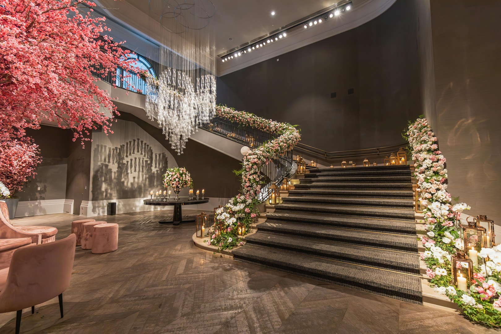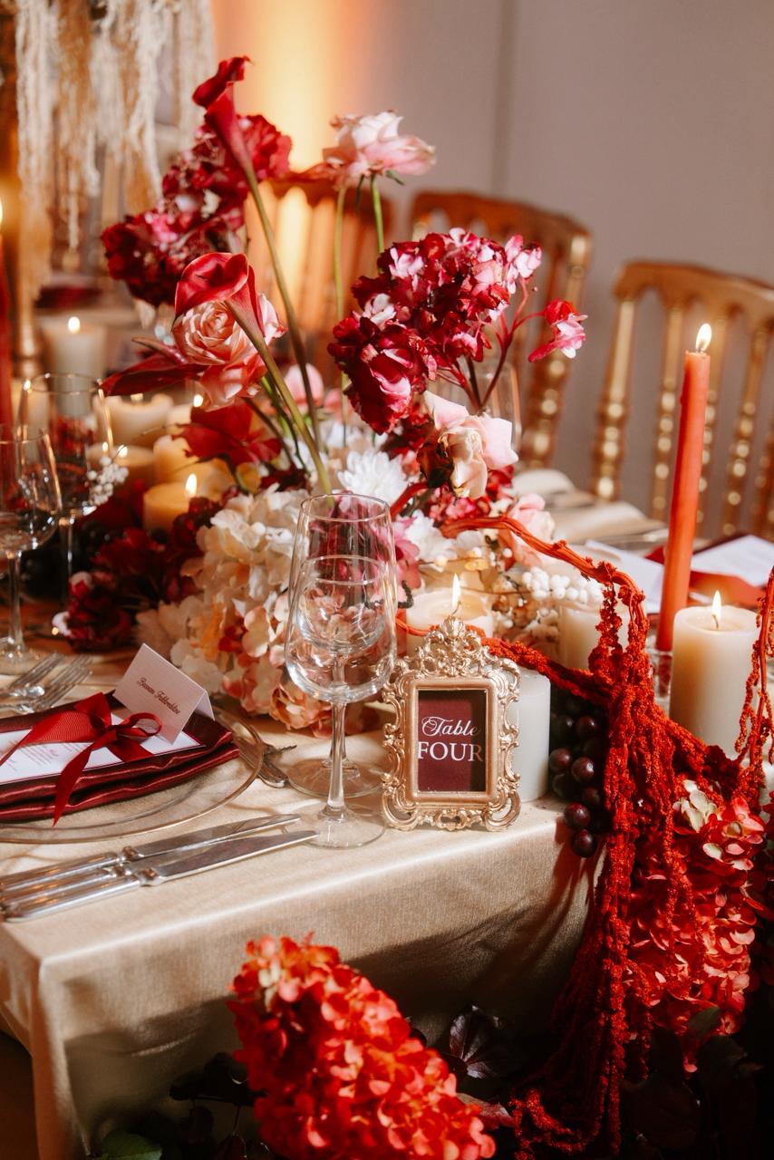 زهور جذابة مناسبة لديكور حفل الزفاف الشتوي (الصورة من أعمال عبير دهام، خبيرة ومصممة ديكورات حفلات الزفاف)