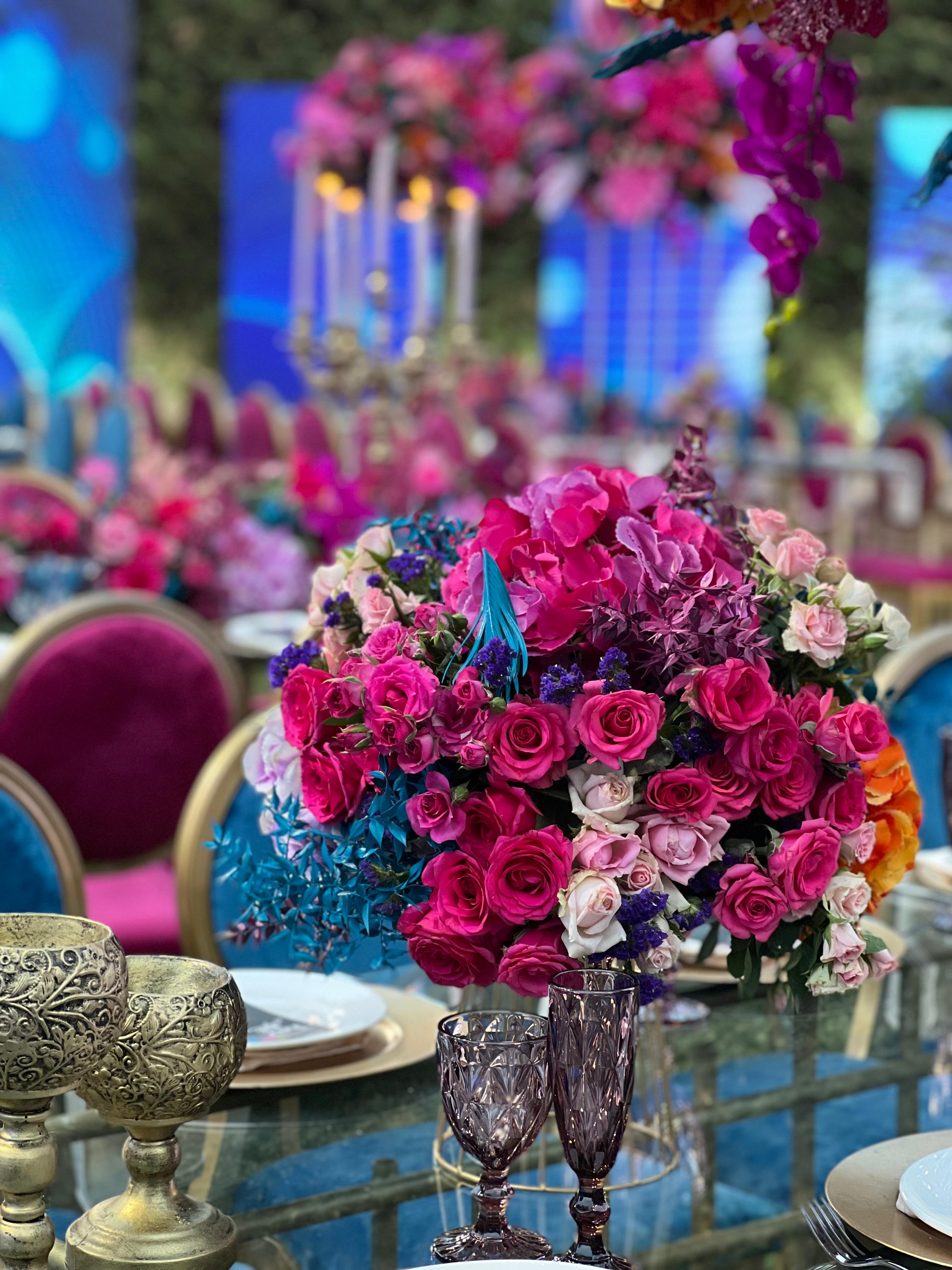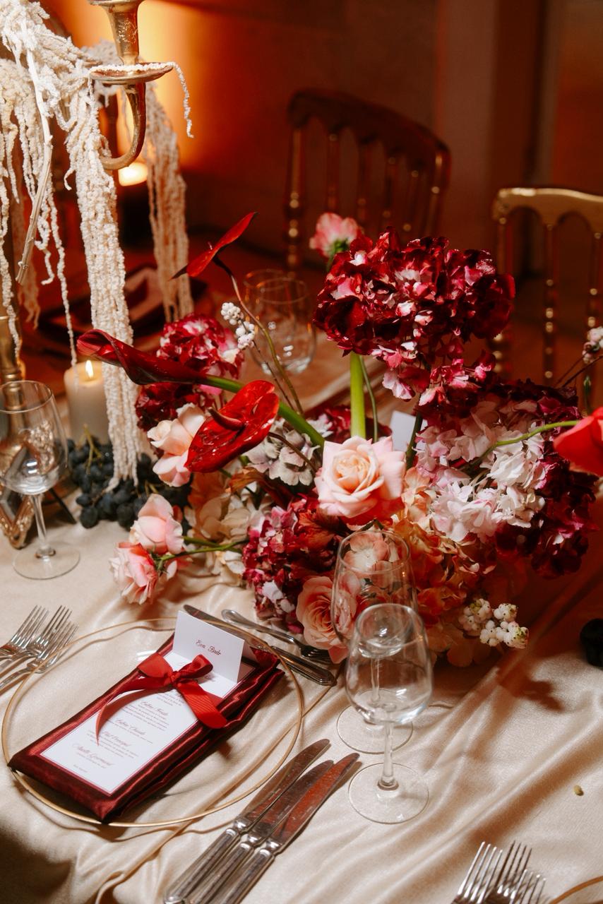 اختيار الزهور الملونة لحفل الزفاف الشتوي (الصورة من أعمال عبير دهام، خبيرة ومصممة ديكورات حفلات الزفاف)