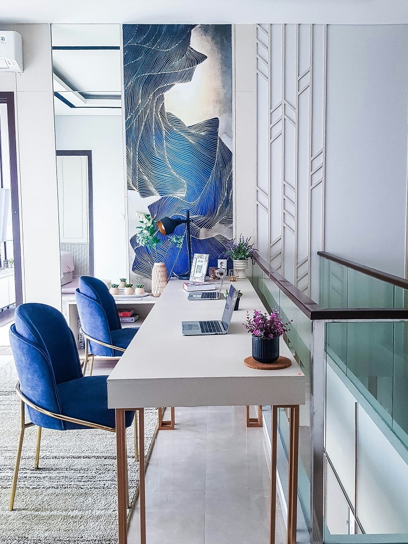 يبدو أزرق الياقوت عموماً رائعاً في جميع المساحات الداخلية. جرّبي دمج لمسات منه مع الأبيض الناصع لاستحضار زرقة البحر الأبيض المتوسط الهادئة، أو امزجيه بألوان الجواهر الأخرى، مثل: الزمردي أو الأزرق الفيروزي أو التوباز؛ لتصميم ديكور أكثر جرأة.