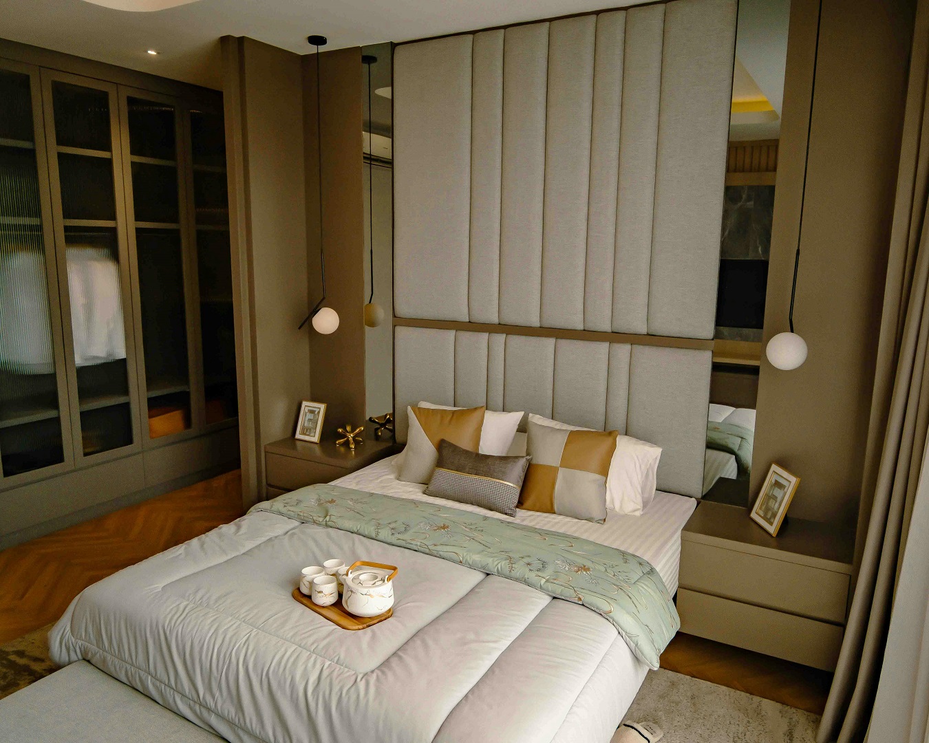 بعد توزيع الوسائد في أماكنها على سطح السرير، وبالطريقة التي تروق لك، يُمكنكِ إضافة لمسة نهائية أنيقة باستخدام تقنية بسيطة: اضغطي برفق على الجزء العلوي الأوسط من كل وسادة، بذا ستحصلين على ثنية ناعمة تُعطي مظهراً منحوتاً، وهو ما نراه غالباً في الفنادق والتصاميم الداخلية العصرية.