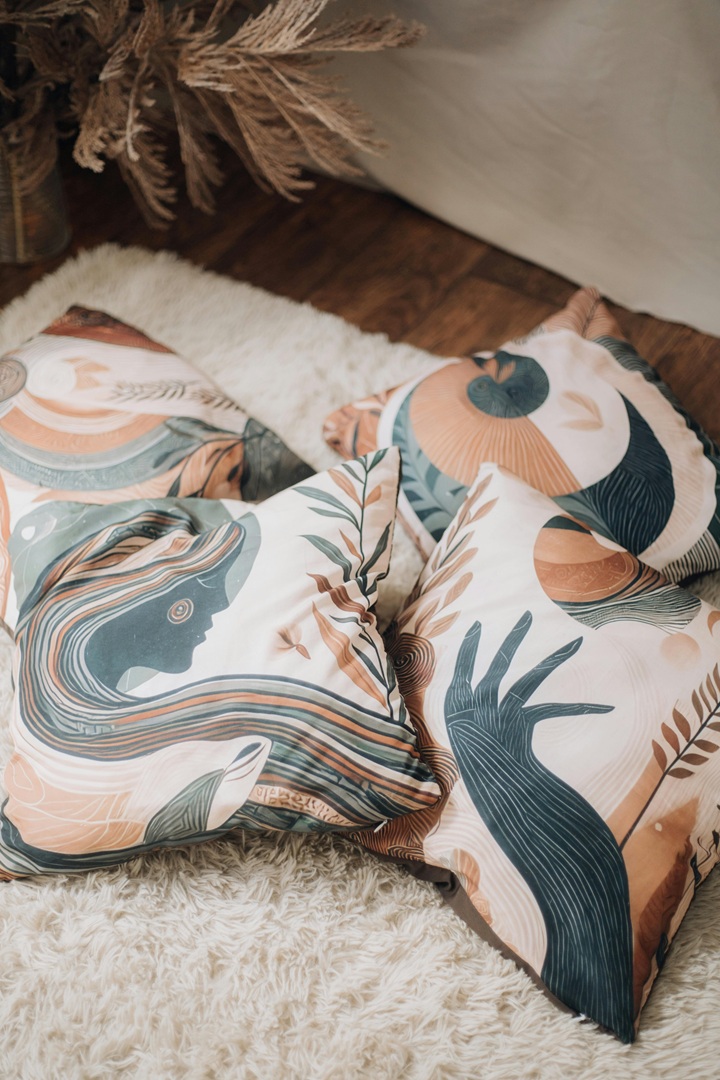 طقم وسائد زخرفية فنية بتصميم تجريدي