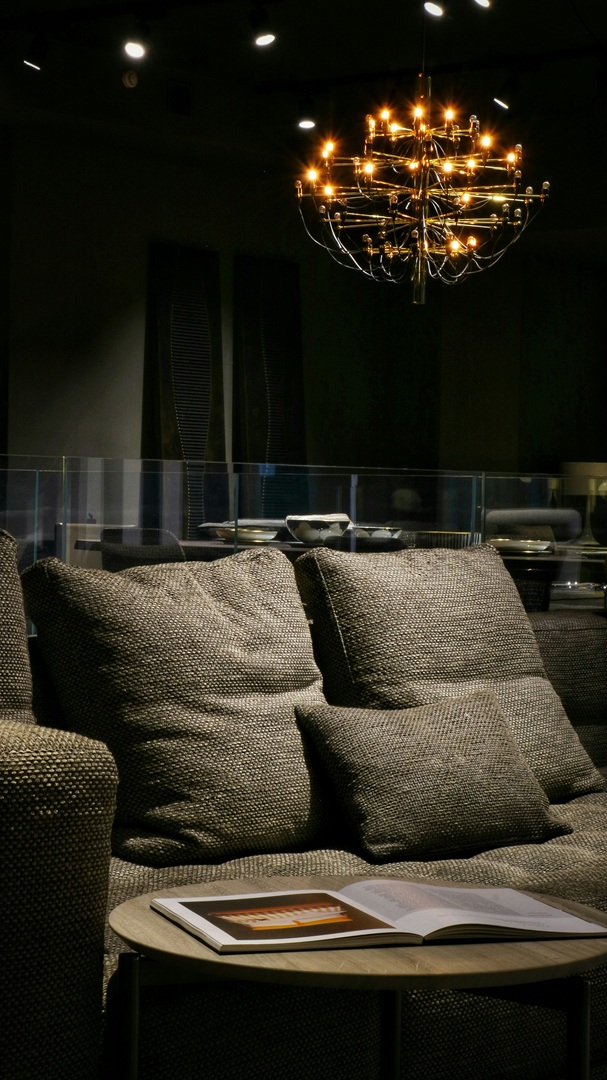 ثريا سقفية جميلة في منطقة المعيشة المنزلية