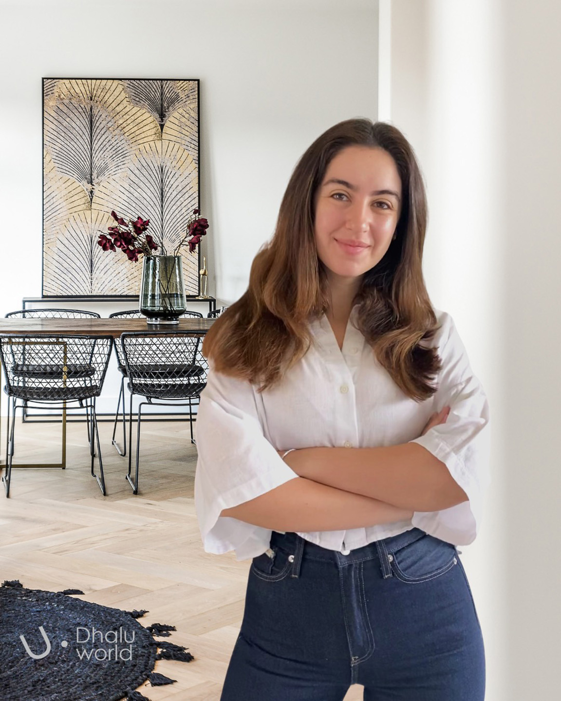 يُبرِزُ «كلاود دانسر» جمالَ الموادِّ الطبيعيَّةِ والفاخرةِ بشكلٍ لافتٍ، خاصَّةً الرخام، وحتى الجريء منه: رخامُ كلكتا بعروقه الذهبيَّة، أو الرماديَّةِ القويَّة، وأربسكاتو بعروقه الدراماتيكيَّة، والرخامُ الأحمرُ عند استخدامه بطريقةٍ مدروسةٍ، لا سيما مع الأرضيَّاتِ التي تُشبه رقعةَ الشطرنج، والترافرتين لإحساسٍ عضوي ودافئ. وتُفضِّل المهندسةُ دمجَ الأبيضِ بالأخشابِ الغنيَّةِ والدافئة مثل الجوزِ، والبلوطِ الداكن، فضلاً عن الدهاناتِ باللونِ الأخضرِ الزيتوني، والأخضرِ الترابي، والأشكالِ العضويَّةِ والمنحنيةِ لإضفاءِ إحساسٍ بالراحةِ والاحتواء. وحسبَ الجميِّل، تتَّجه الألوانُ في 2026 نحو محاكاةِ الطبيعة، والأبيضُ هو الخلفيَّةُ المثاليَّةُ لذلك. وتُوضح: «من أكثر الألوانِ التي تنسجمُ مع كلاود دانسر: أخضرُ المريميَّةُ الهادئ والمستوحى من الأعشاب، والألوانُ الترابيَّةُ مثل البيجِ والطين، فضلاً عن درجاتِ البنِّي الدافئة، ودرجاتِ الرمادي الفاتح، والألوانِ الحجريَّة».