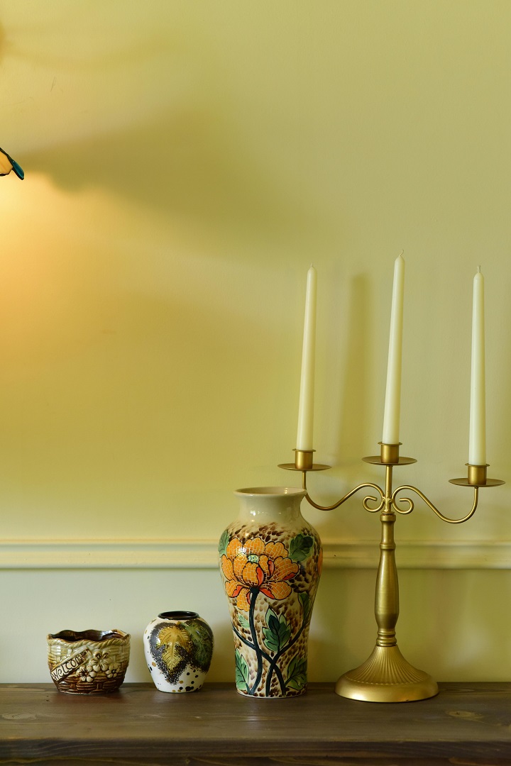 - الشموع: تشيع الشموع جواً دافئاً وجذاباً. ولإضفاء لمسة احتفالية، استخدمي برطمانات زجاجية مزينة بشرائط أو دانتيل ووزعيها على سطح الكونسول، أو اكتفي بالشموع المعطرة.