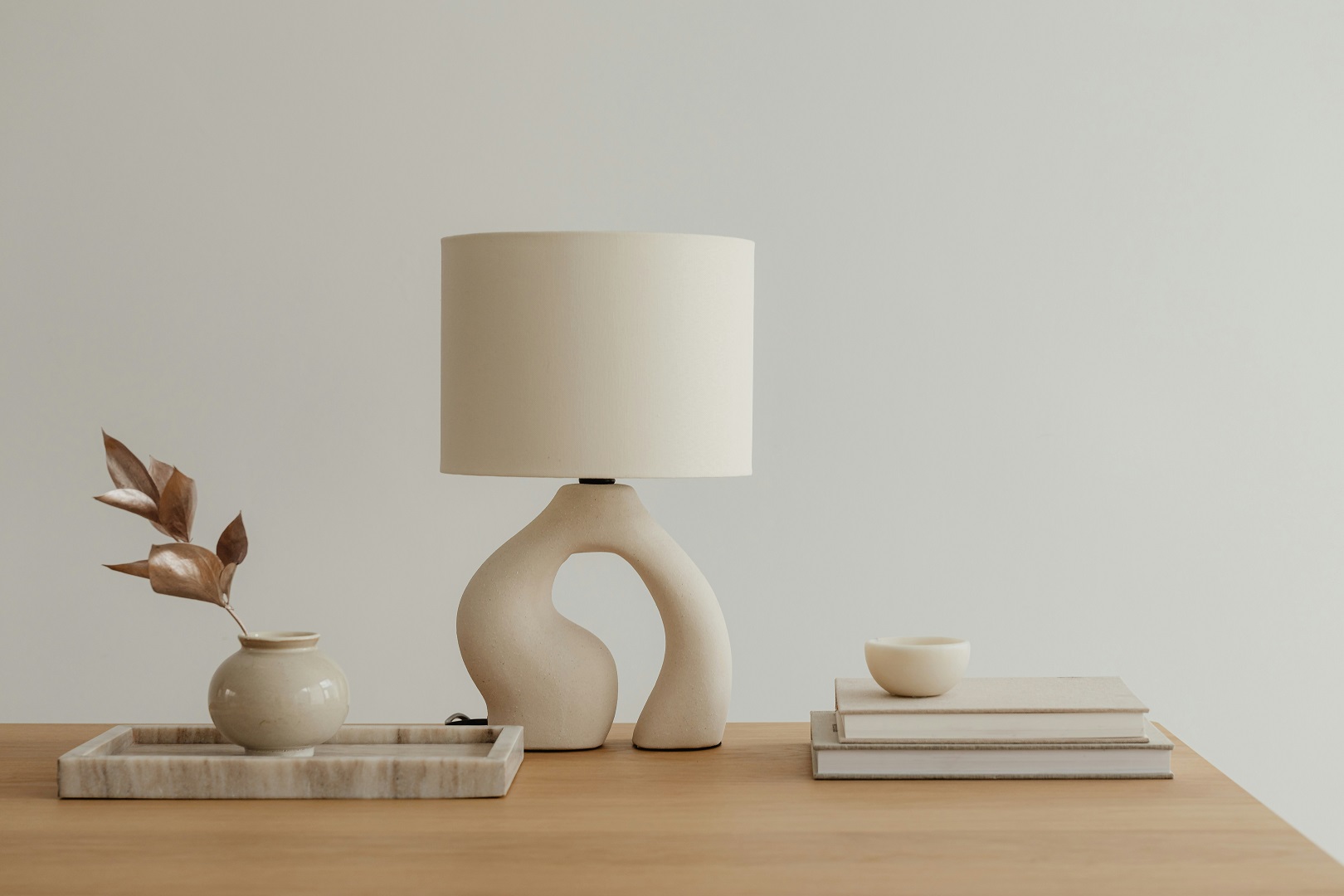 - المزج بين خامات مختلفة: نسّقي مزهرية زجاجية ناعمة بجانب صينية خشبية خشنة أو قطعة معدنية لامعة، لكسر الرتابة.
