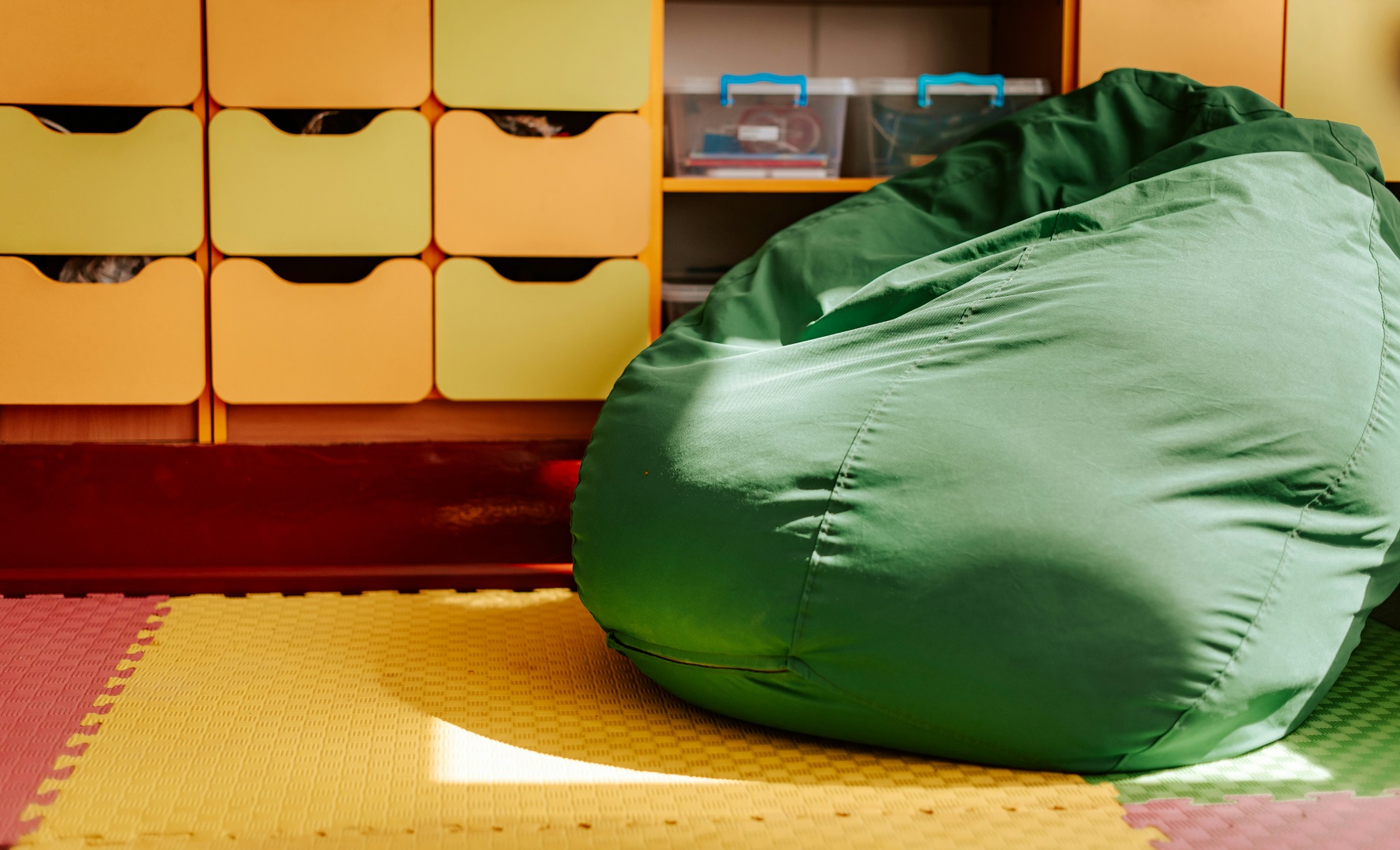 يقوم اللون بدور حيوي في توجيه الحالة المزاجية والسلوك في أماكن الأطفال. تشمل الألوان المناسبة للصغار الآتية، علماً أن الألوان تحل من خلال المقاعد، ورفوف الكتب، والجدران: