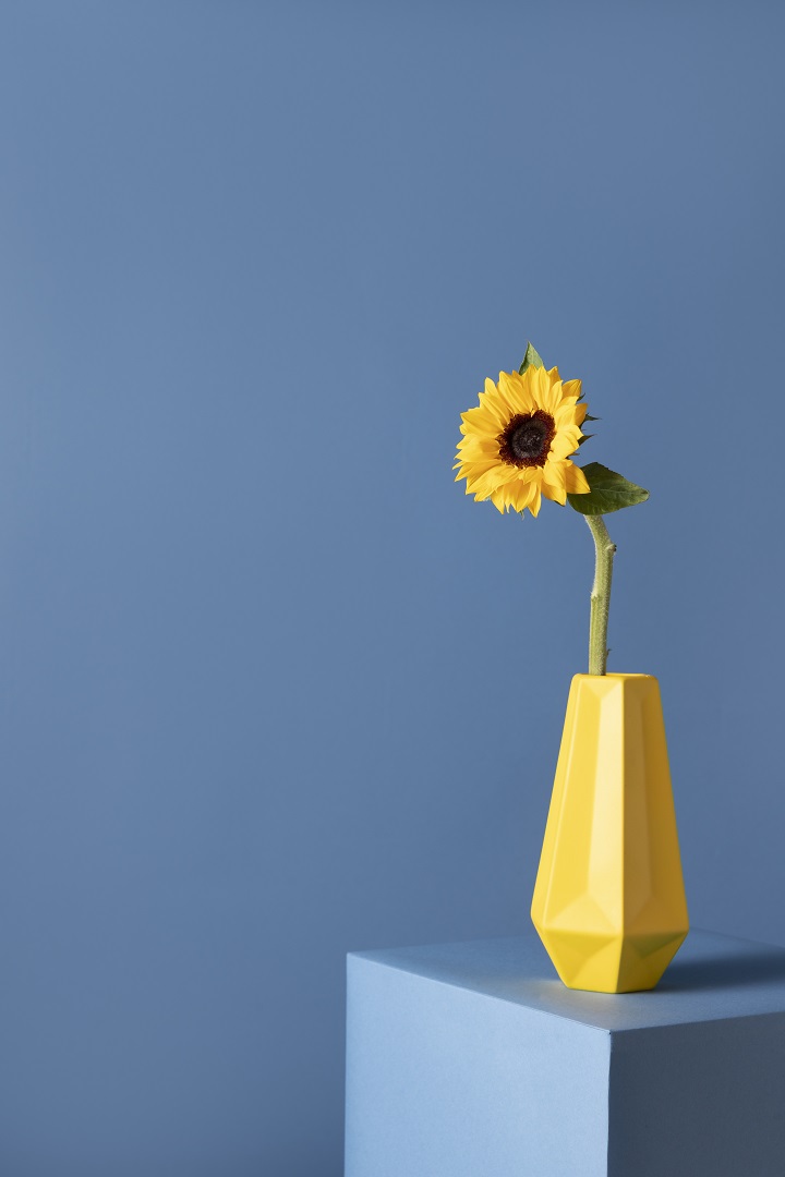 جربي ألواناً وأحجاماً مختلفة من عباد الشمس؛ من الأصفر التقليدي إلى الأحمر الداكن وحتى البرتقالي الفاتح. لكن، لا تُثقلي مساحتك بها. أحياناً، البساطة سرّ الجمال.