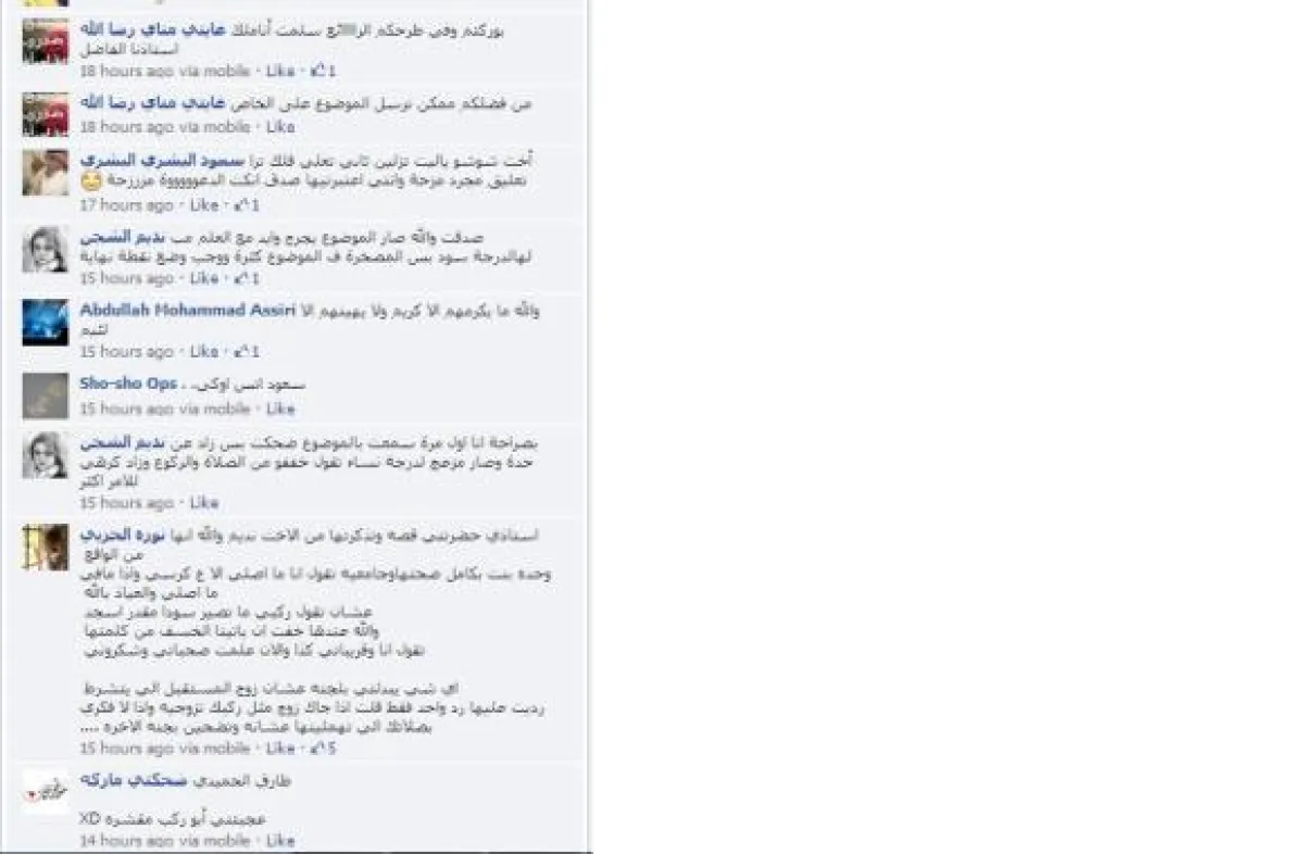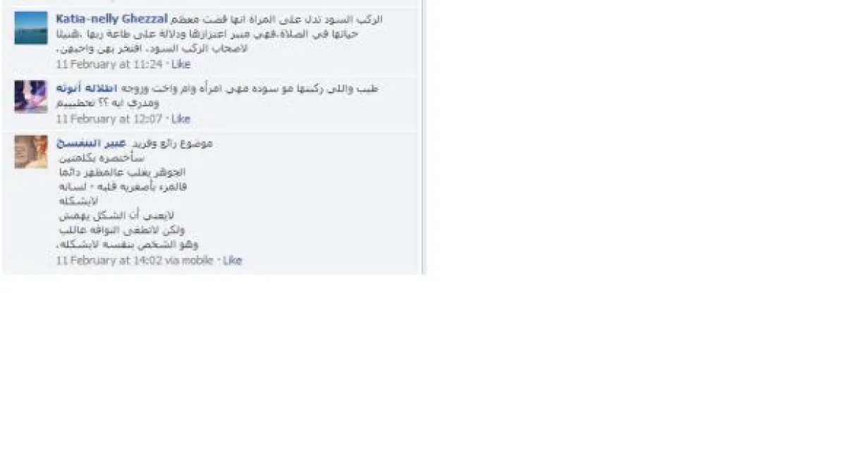 والآن بدأت تختفي هذه الكلمات بسبب عدم إعطائها اي اهتمام فمن يثق في نفسه لا تهزه كلمات خرجت من أفواه ملوثة". وكتبت Katia-nelly Ghezza: "الركب السود تدل على أنّ المرأة قضت معظم حياتها في الصلاة. فهي منبر اعتزازها ودلالة على طاعة ربها. هنيئاً لأصحاب الركب السود. افتخر بهنّ وأحبهنّ.