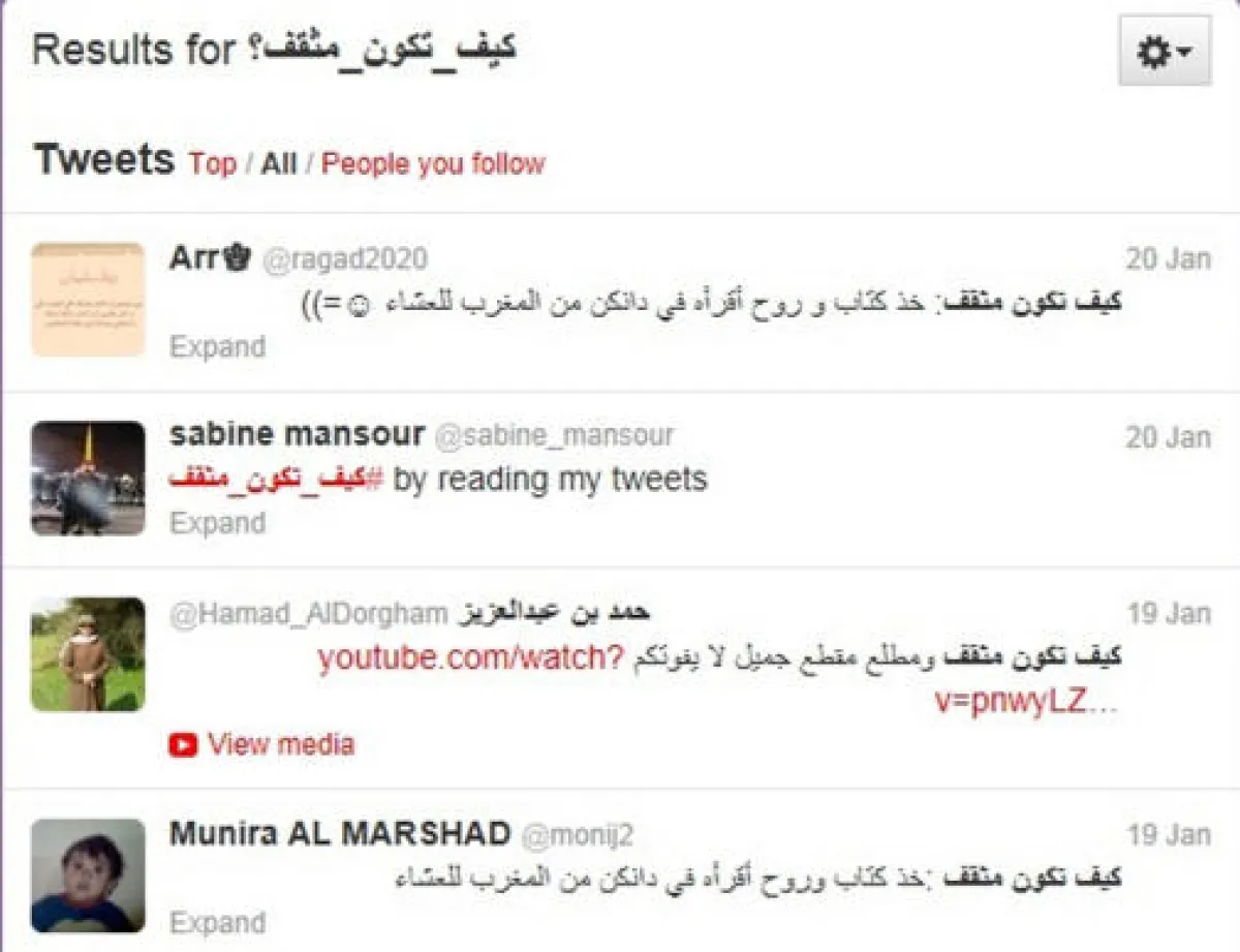 «كيف تكون مثقفاً؟».. إنه ليس مجرد سؤال، بل «هاشتاق» نشط على «تويتر»، والذي استقطب عدداً كبيراً من الناس للتعليق والمشاركة وإبداء الرأي حول كيف يمكن أن يكون كل منا المثقف المرجو. كان السؤال غريباً بعض الشيء، خصوصاً أنه يشير بطريقة أو بأخرى إلى كيفية صناعة المثقف، التي يحكمها الكثير من الجدل حول دور المثقف وصورته في المجتمع!
