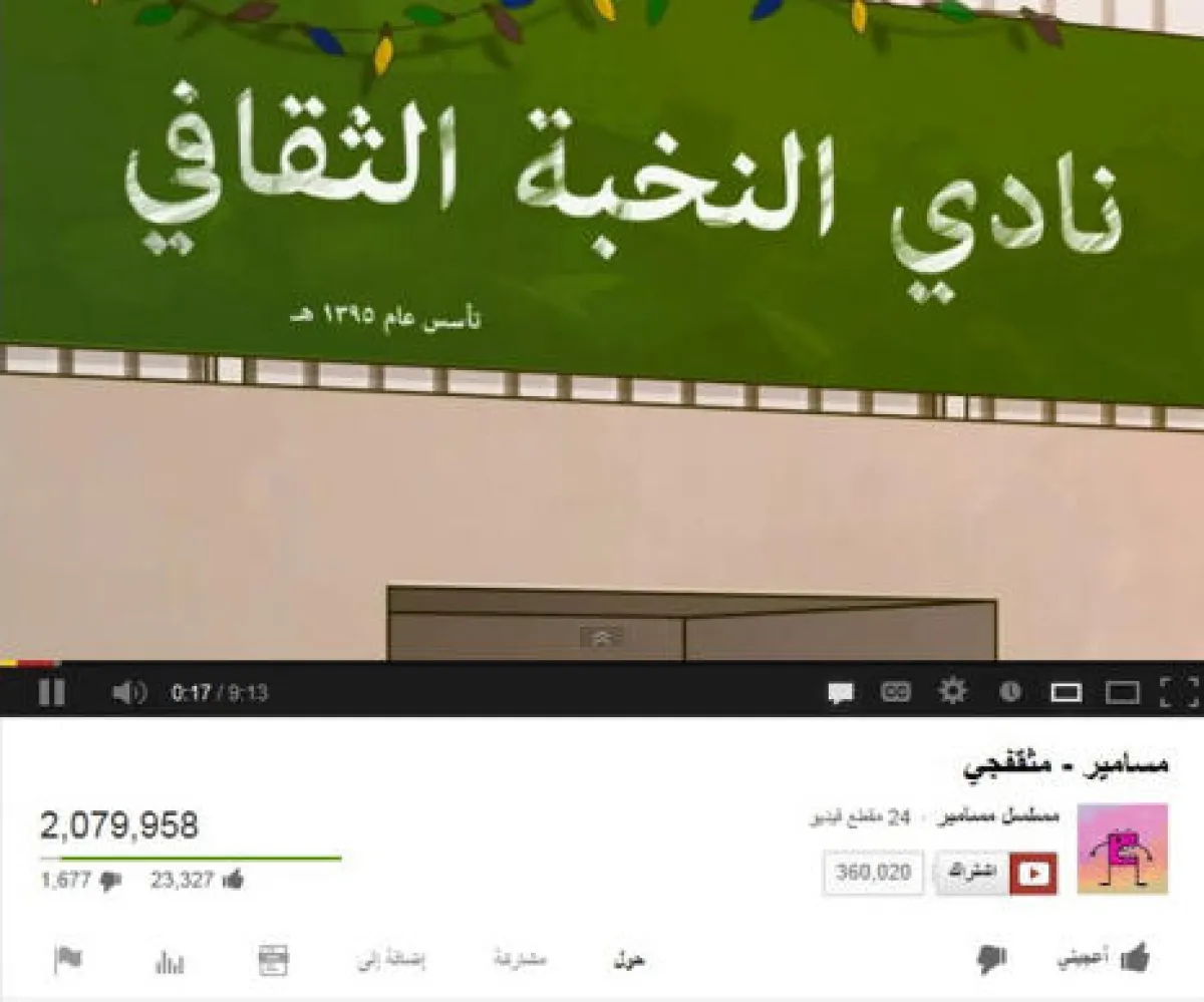 من هنا قادتنا هذه التغريدة إلى رابط برنامج «مسامير» الذي يعرض على «يوتيوب» بعنوان «مثقفجي»، الذي وصلت نسبة مشاهدته إلى 2.083.152 يبدأ الاسكتش بجملة تختصر الأمر برمته: «كل حراك ثقافي لا ينتمي للشارع هو مشروع منجز»، ثم ننتقل إلى نادي النخبة الثقافي، حيثُ يلقي المثقف د.مخلف ندوة حول البنيوية والتفكيكية في الأدب التشيكي مستخدماً مفردات وألفاظاً مركبة، لا يتسنى للمتلقي في العادة استيعابها.