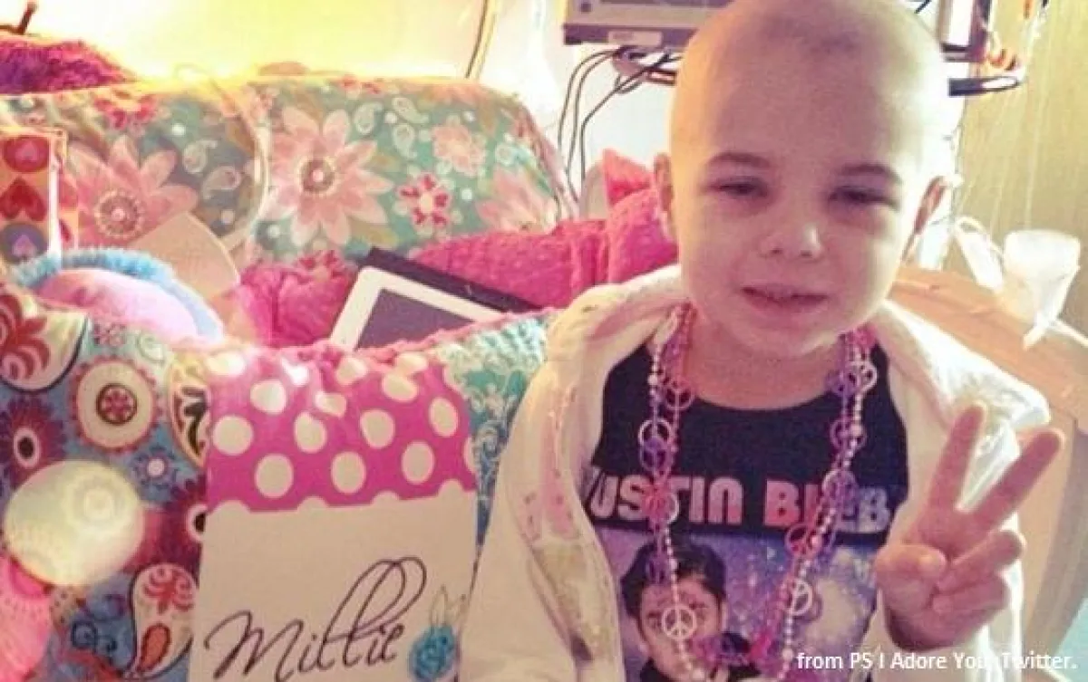 ميلي البالغة من العمر 7 أعوام فقط، وهي من أكبر محبّي بيبر، مصابة بمرض "سرطان الدم"منذ ثلاثة أعوام.