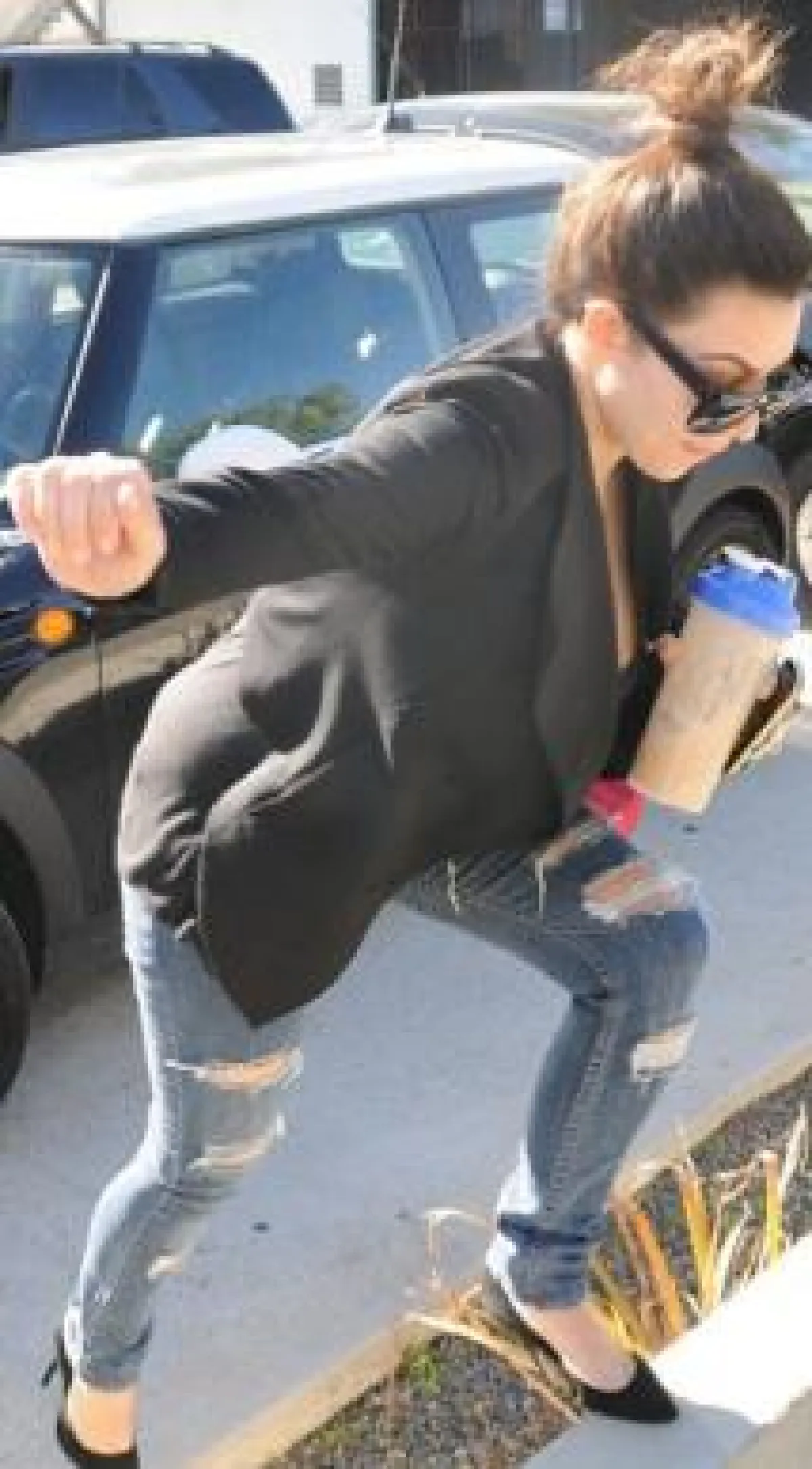 فالنجمة السمراء تعثرت خلال خروجها من السيارة وهي متوجة الى صالون وعند عودتها الى سيارتها بعد تصفيفها شعرها.