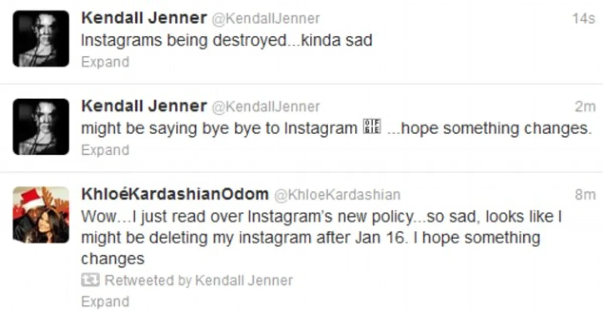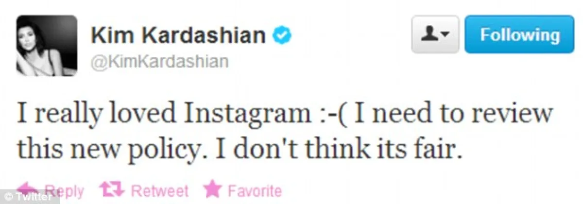 وتسبّب هذا القرار في امتعاض الكثير من النّجوم، من بينهم "شقيقات آل كاردشيان" اللواتي هدّدن بإلغاء حساباتهنّ الخاصّة على موقع "انستغرام"، وعلّقت كيم على هذا القرار: "أنا حقّاً أحبّ الانستغرام، لكن عليّ مراجعة هذه السياسة الجديدة، ولا أعتقد أنّها عادلة".