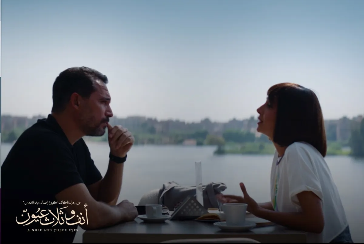 فيلم "أنف وثلاث عيون" بطولة النجوم: ظافر العابدين، صبا مبارك، سلمى أبو ضيف، أمينة خليل- التي تظهر كضيفة شرف الفيلم- جيهان الشماشرجي، صدقي صخر، سلوى محمد علي، نبيل ماهر، نور محمود، نورا شعيشع، كريمة منصور، رمزي العدل، حسن العدل، والطفل سليم مصطفى، الفيلم مأخوذ عن رواية للكاتب الكبير إحسان عبد القدوس، والتى سبق وتحولت إلى فيلم صدر عام 1972 يحمل اسم “أنف وثلاث عيون” بطولة محمود ياسين، ماجدة ونجلاء فتحي، وبعد مرور أكثر من نصف قرن على إنتاجه، قررت شركة إنتاج شاهيناز العقاد إعادة إحياء الفيلم بمنظور معاصر كتبه السيناريست وائل حمدي.