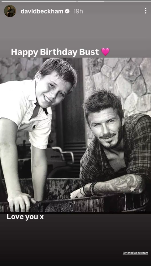 ظهرت في الأولى لقطة عائلية في حوض السباحة تجمع ديفيد وزوجته فيكتوريا مع بروكلين وهو طفل صغير، وكتب عليها: "27 اليوم. يوم ميلاد سعيد يا باست (Bust)"، وهو اسم التدليل الذي يطلقه على ابنه، مضيفاً: "نحن نحبك".