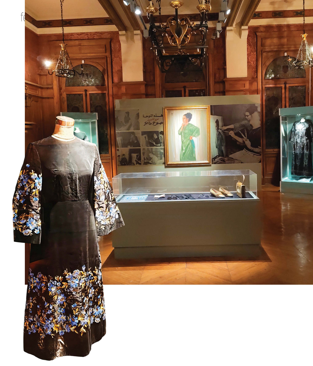 الركنُ الخاصُّ بفساتينها، كان ساحراً أيضاً، فهي لم تكن مجرَّد قطعِ قماشٍ، بل شكَّلت فصلاً من سيرتها. فساتينُ، جمعت بين الأناقةِ والوقار. كانت ألوانُها المفضَّلةُ البنِّي، والأخضر، والمارون، والأسود، وتفاصيلُ التصاميمِ كانت شاهدةً على ذوقٍ، يميلُ إلى الرصانة.