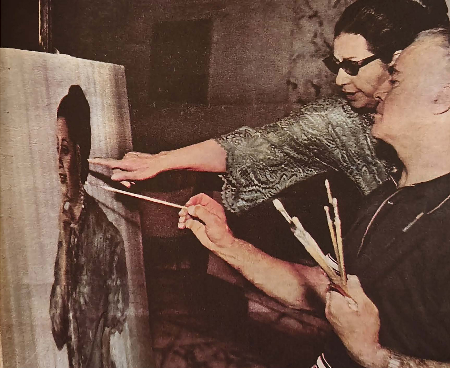 إحدى اللوحاتِ التي أسرتنا، كانت بريشةِ الفنَّانِ صلاح طاهر الذي عبَّر من قبل عن صعوبةِ رسمِ كوكبِ الشرق، وشعر كمَن «يحاولُ حبسَ الشمسِ في بقعةٍ» حين رسمها. كما وثَّقت الصورُ زياراته المتكرِّرةَ إلى بيتها، ليطلبَ منها ارتداءَ ألوانٍ معيَّنةٍ، وكانت أم كلثوم تطاوعه تماماً مثلما كانت تفعلُ مع الملحِّنين، وفي الوقتِ نفسه، تحاولُ أن تُدخِلَ تعديلاتٍ على العباراتِ الموسيقيَّة. وصلاح طاهر، هو «موسيقارُ الألوانِ في الفنِّ المصري الحديث». هكذا كانت أم كلثوم ملهمةً في الفنِّ كلِّه للموسيقيين كما التشكيليين.