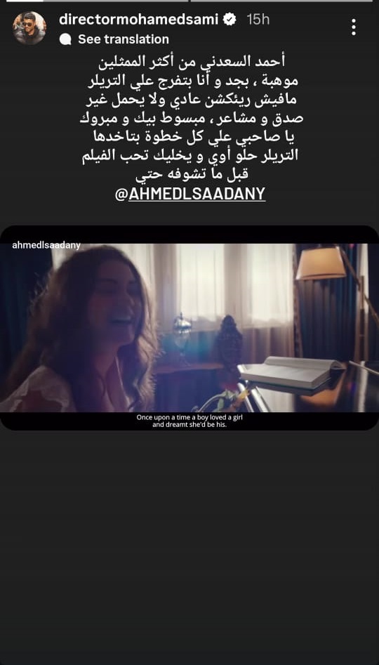 شارك المخرج محمد سامي من خلال خاصية "ستوري" بحسابه على "إنستغرام"؛ إعلان فيلم "ولنا في الخيال حب" بطولة النجم أحمد السعدني؛ ووجه له رسالة معبراً من خلالها عن إعجابه بموهبته وأدائه ومهنئاً له على عرض الفيلم؛ حيث قال : " أحمد السعدني من أكثر الممثلين موهبة، بجد وأنا بتفرج على التريلر مفيش ريأكشن عادي ولا يحمل غير صدق ومشاعر، مبسوط بيك ومبروك يا صاحبي على كل خطوة بتاخدها، التريلر حلو أوي ويخليك تحب الفيلم قبل ما تشوفه حتى".
